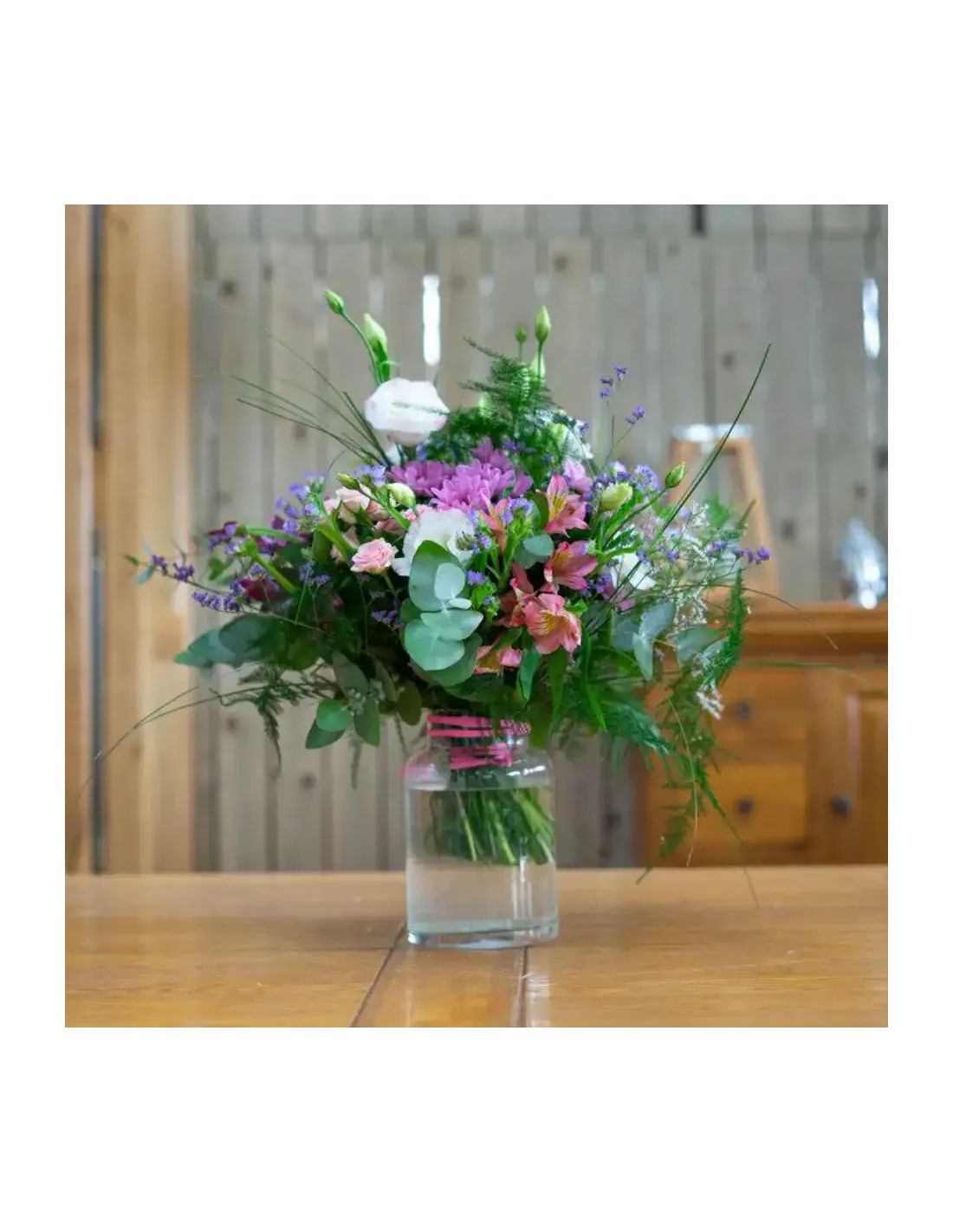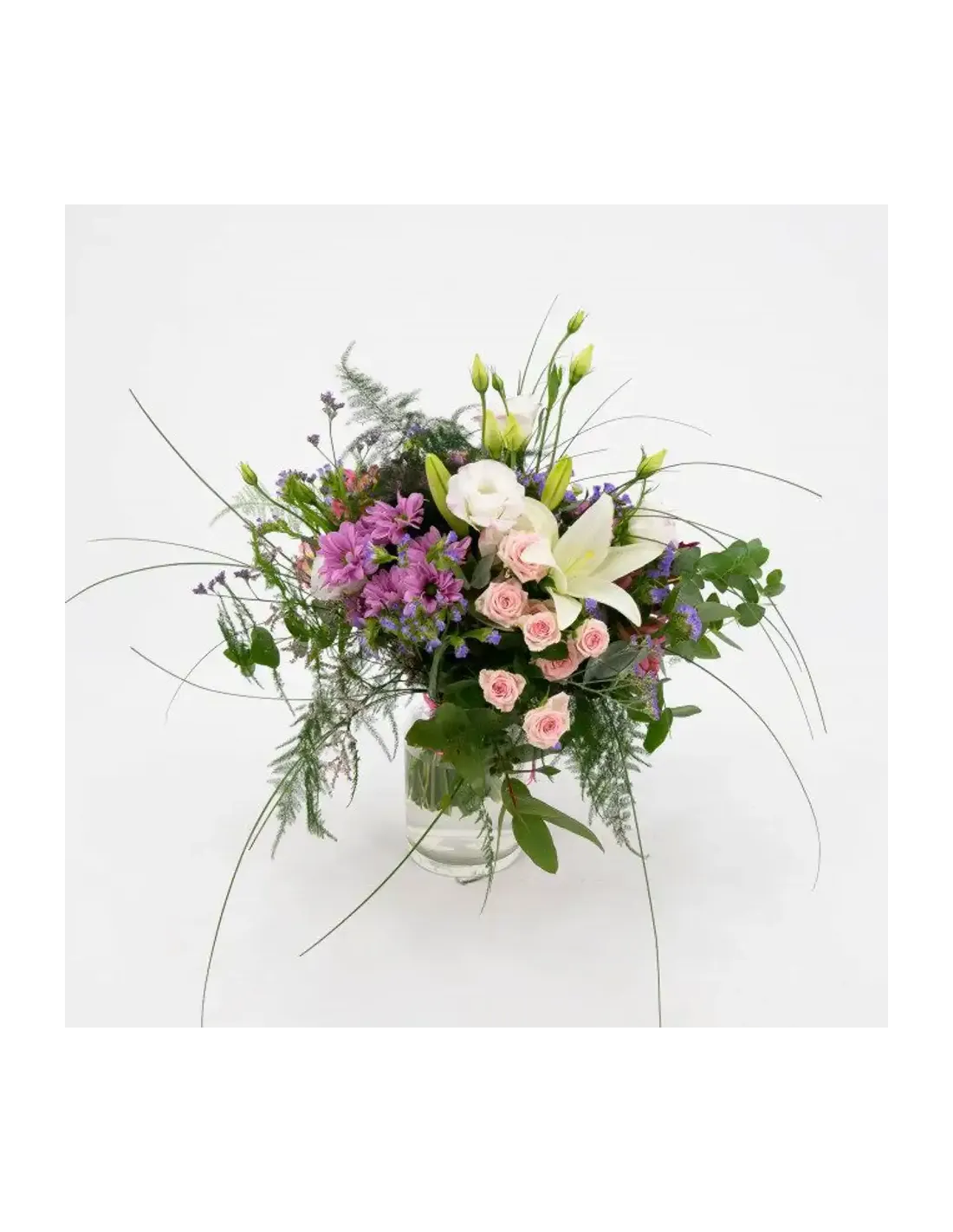 Colors que alegren la tardor, descobreix el nostre ram silvestre en tons malves i roses. Un bouquet que enamora des del primer moment, ah i amb gerro inclòs! Colors clàssics i dolços que creguin un ram vibrant i ple de tendresa. Un disseny amb tonalitats que sorprenen la tardor, però que mai passen de moda. Una composició única per a omplir d'alegria la teva llar, o bé per a regalar-les!