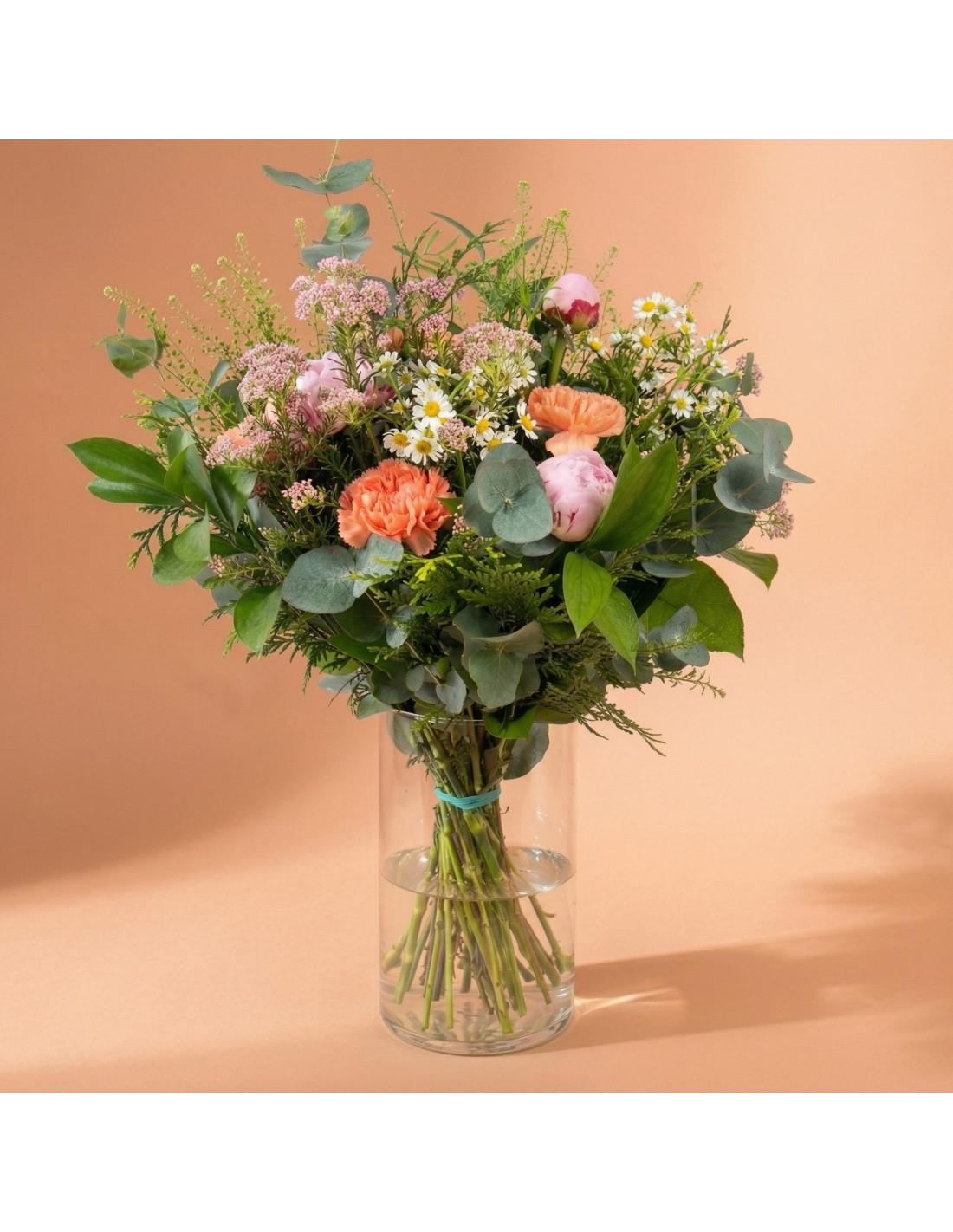 Les peònies Sara Bernhardt, amb els tons rosats i la forma envolupant, són les grans protagonistes. La seva bellesa suau i elegant aporta volum i una sensació gairebé etèria que converteix aquest ram en una cosa molt especial.