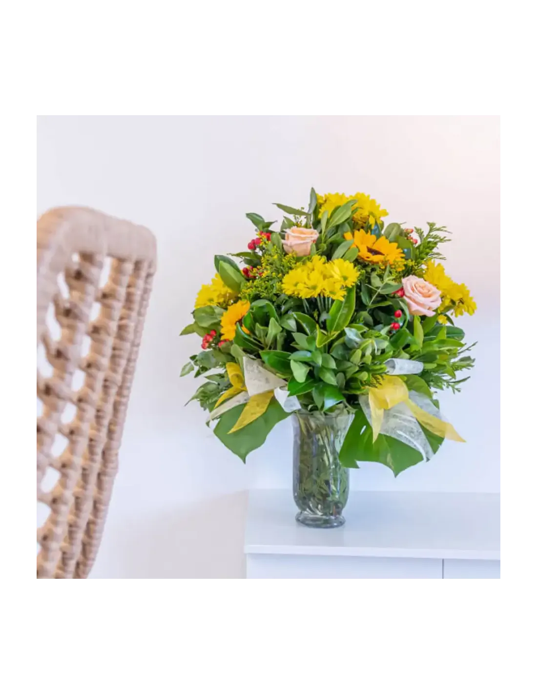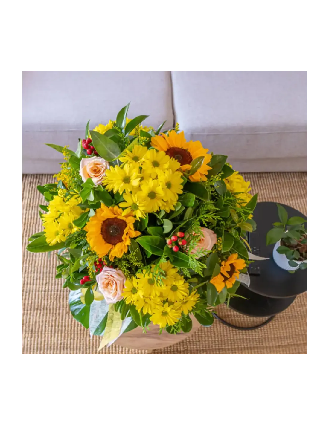 Il·lumina qualsevol espai amb el nostre vibrant Ram de Flores "Sol d'Estiu"! Aquest espectacular arranjament floral és perfecte per alegrar el dia i afegir un toc de frescor i color a qualsevol ambient. Cada ram ha estat dissenyat acuradament pels nostres experts floristes, combinant flors d'alta qualitat per crear una obra d'art floral única. Aquest Ram de Flors "Sol d'Estiu" és ideal per a qualsevol ocasió: aniversaris, aniversaris, agraïments o simplement per dir "t'estic pensant". Fes la teva comanda avui i afegeix-hi un toc de sol i alegria a la vida d'algú especial!