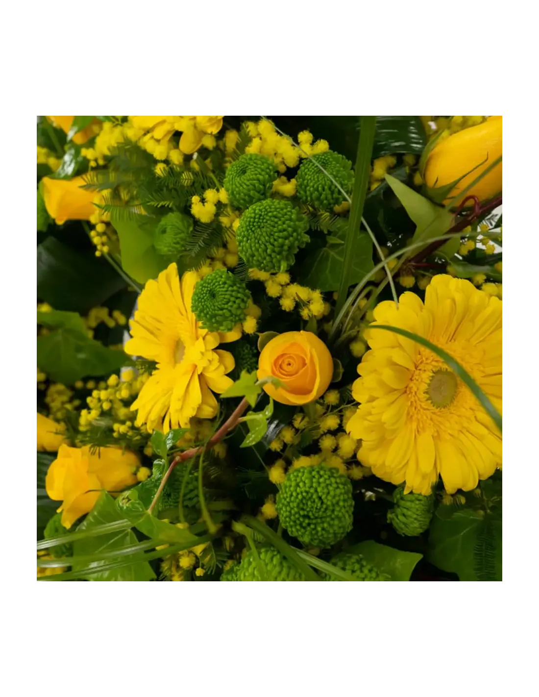 Elegant corona de mimosa i roses, un present elegant i suau per transmetre la calidesa dels sentiments en dies difícils.