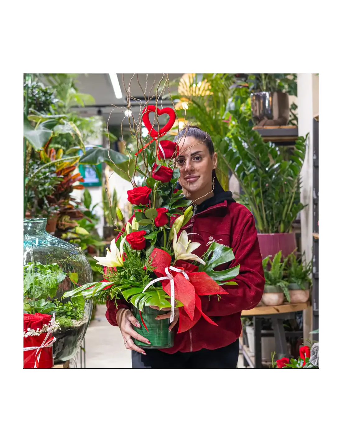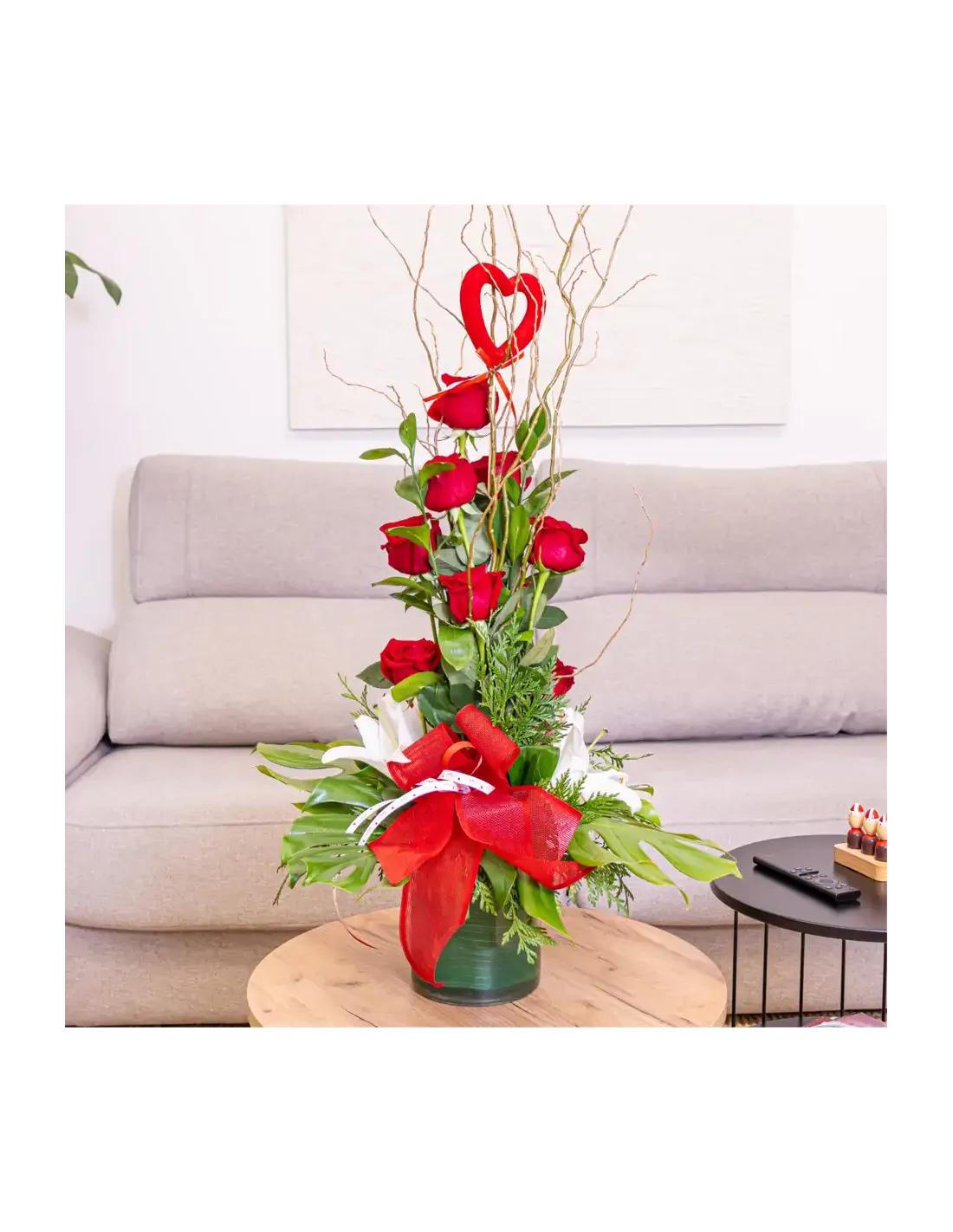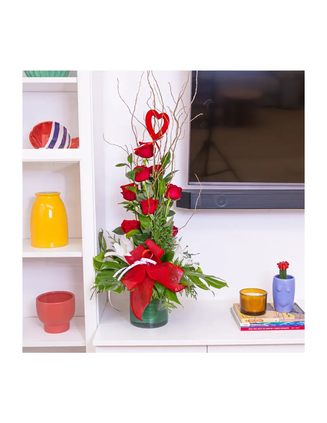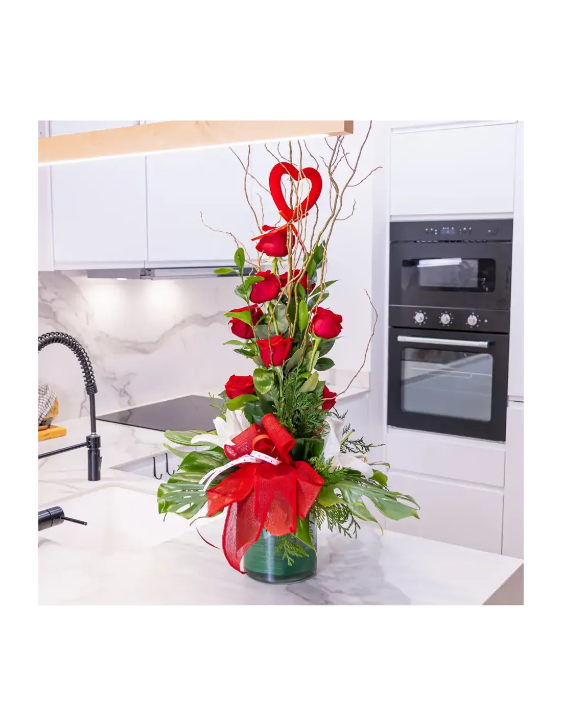 Cilindre Piramidal amb 9 Roses Rojas: Perfecte per a Sant Valentí.SV5