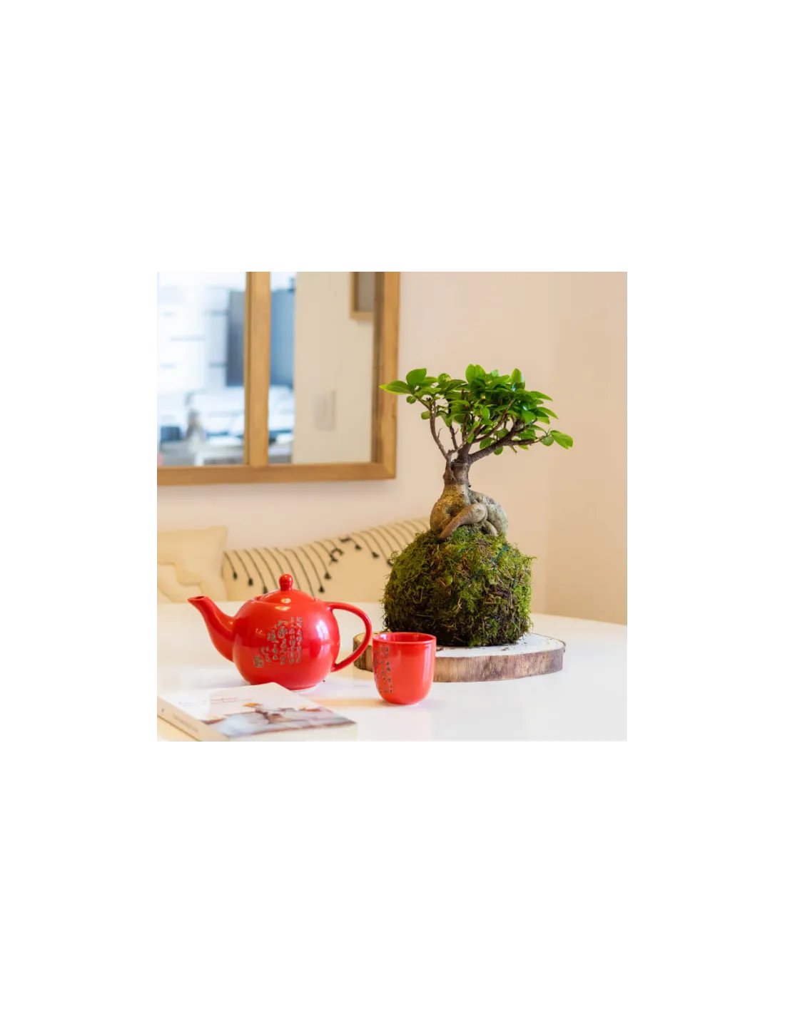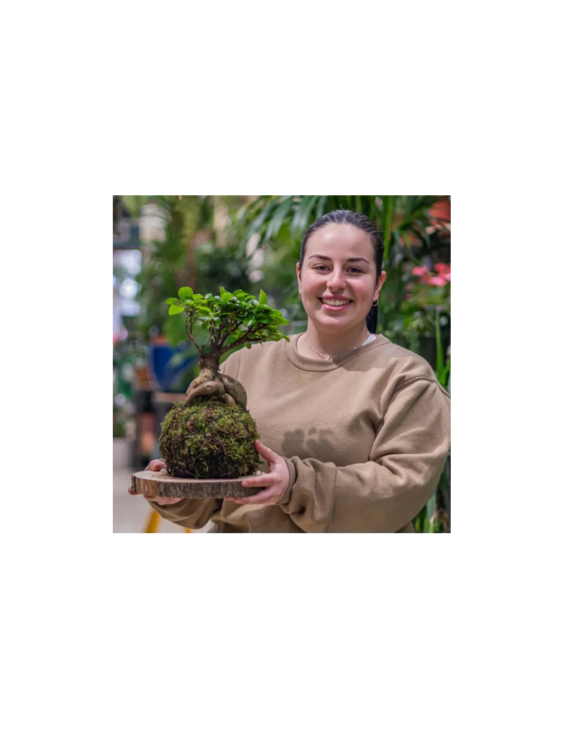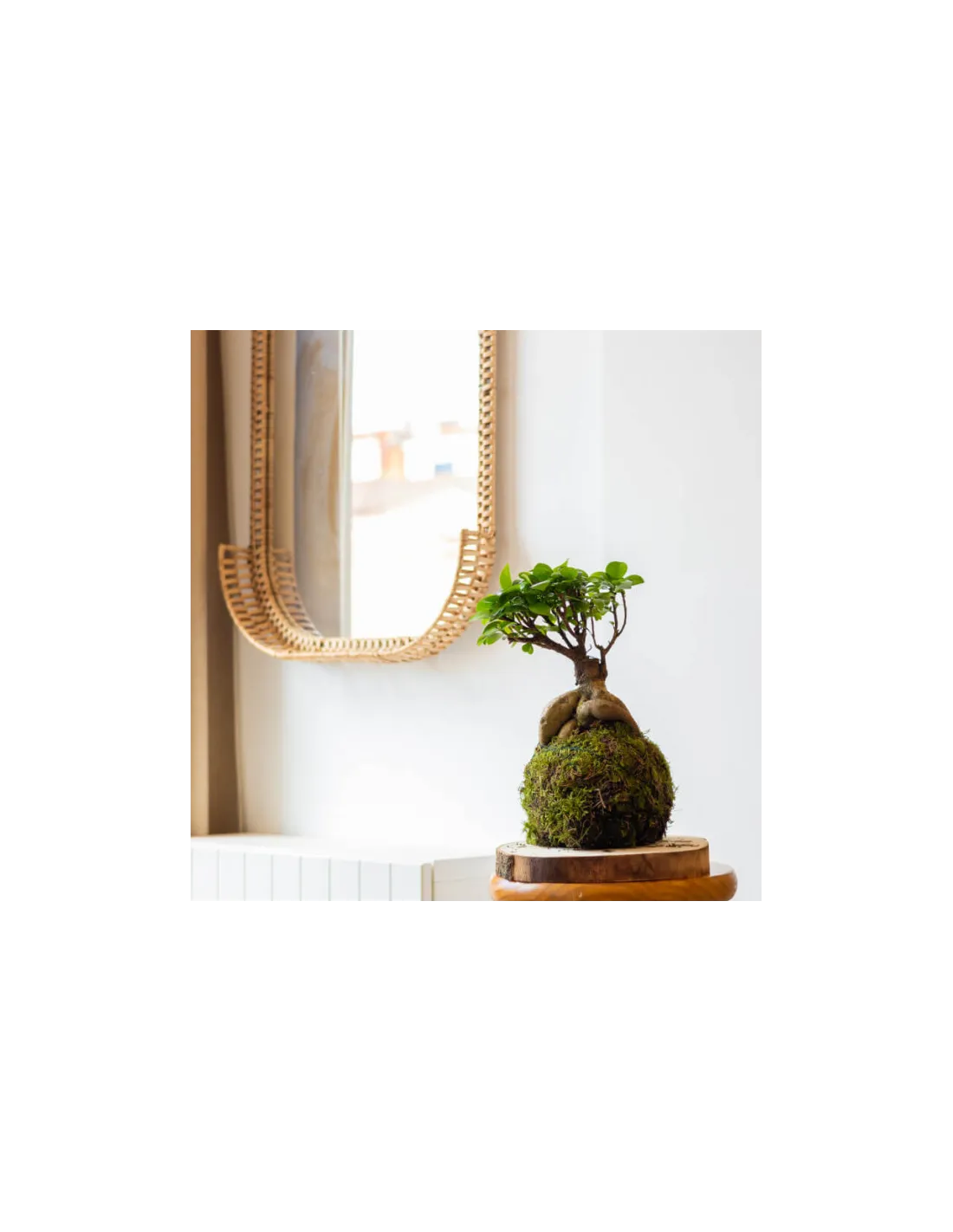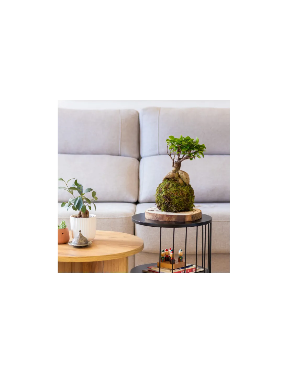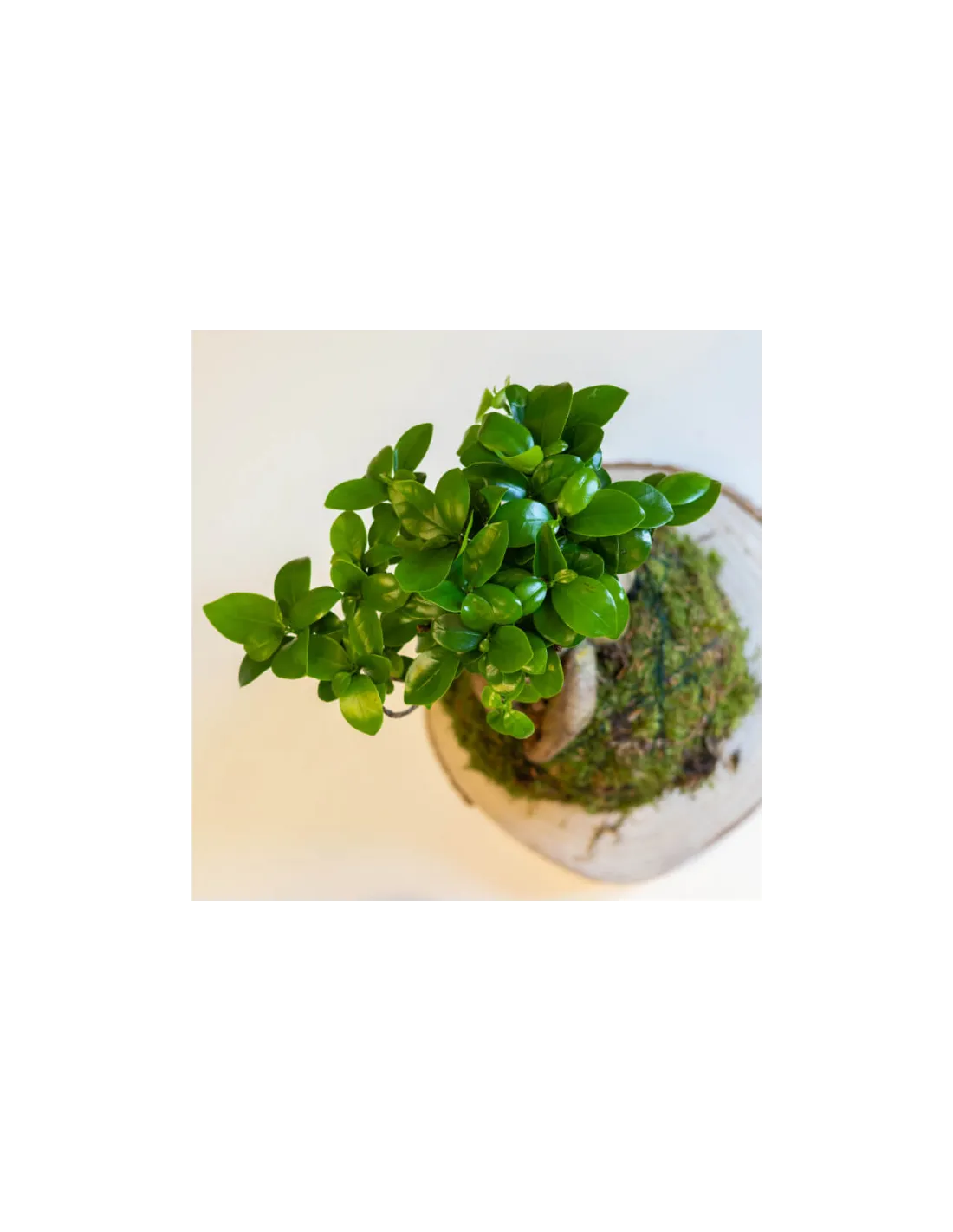 La majestuositat del Ficus Ginseng es presenta en una forma única de kokedama, afegint-hi un toc de calma i equilibri al teu ambient.