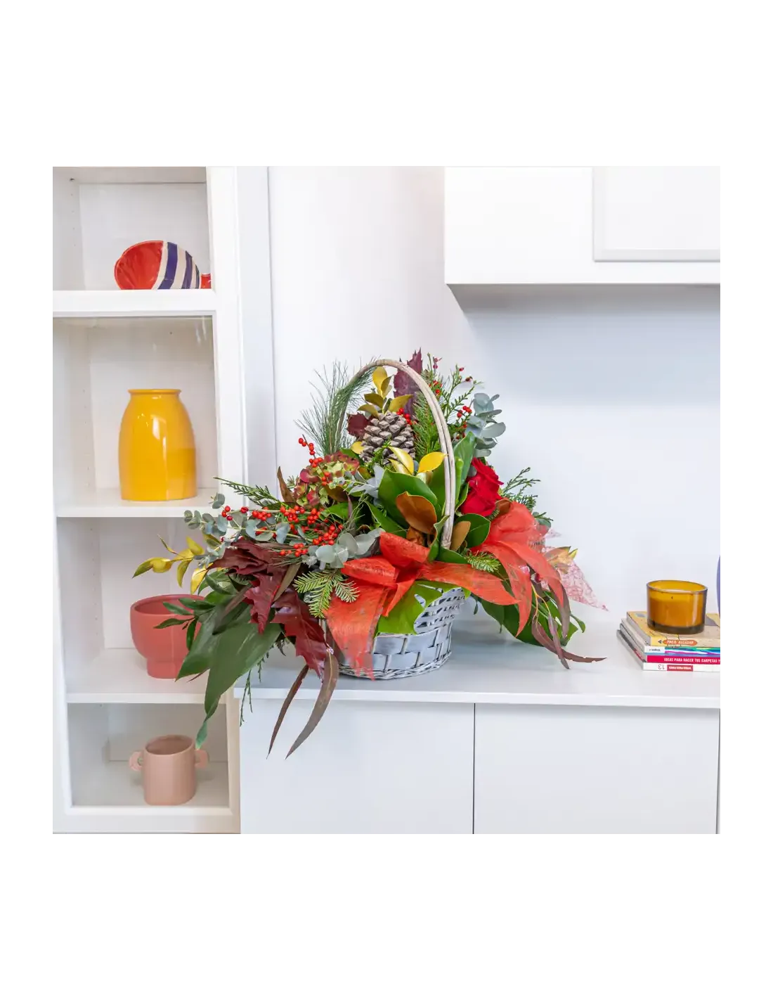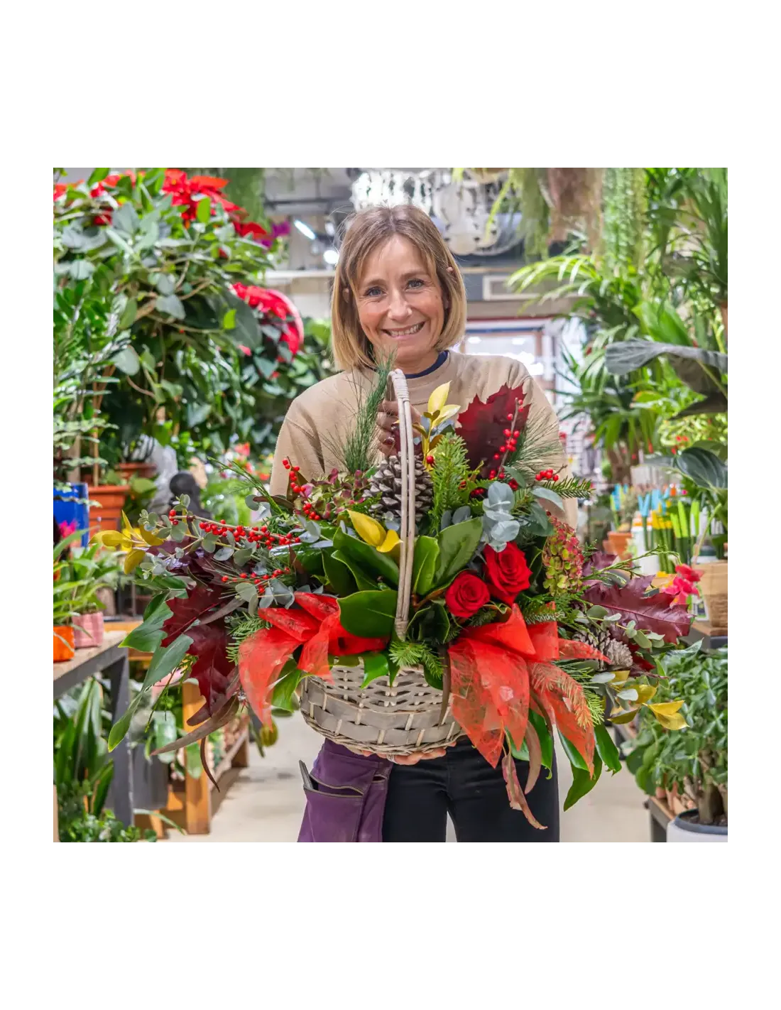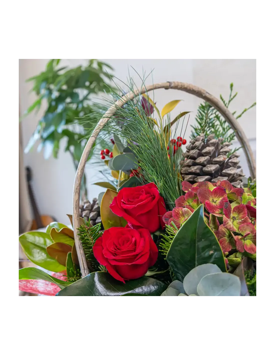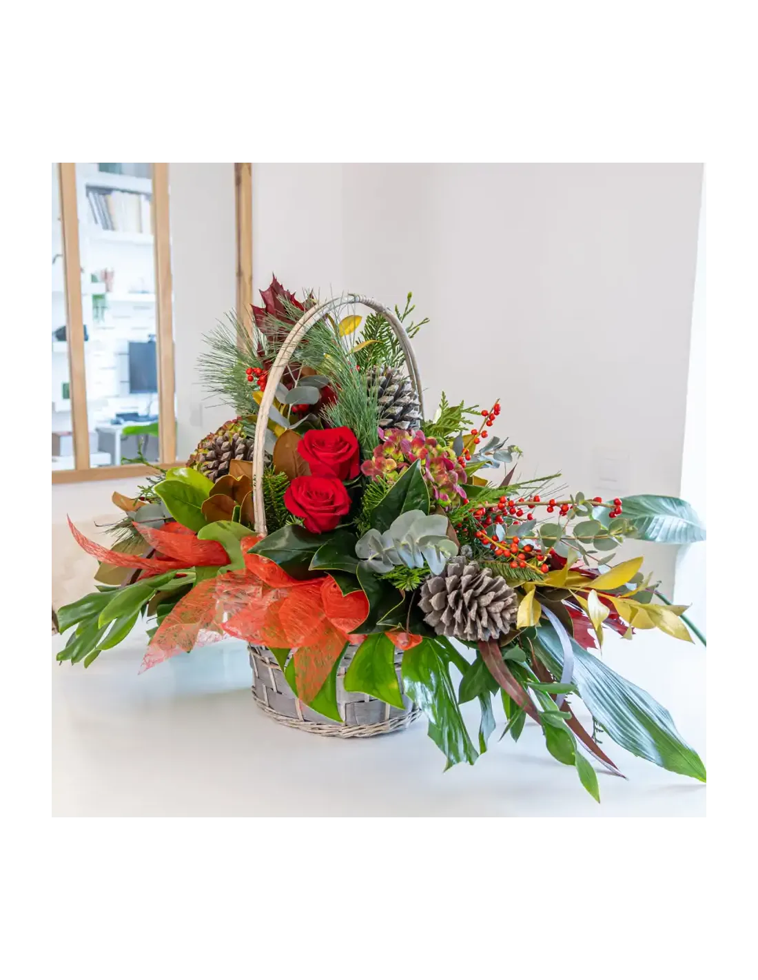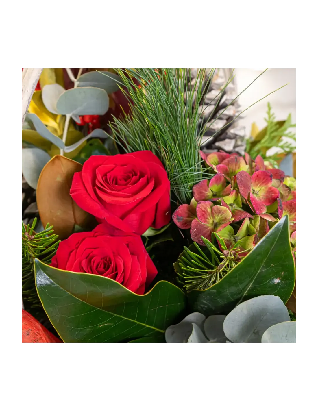 Aquest ram és una celebració del Nadal en la màxima expressió. La intensitat de les roses vermelles es combina amb la bellesa hivernal de l'Ilex, les hortènsies i l'encant natural de les pinyes. Complementat amb la frescor del pi, avet, eucaliptus i el toc únic del ruscus i kerkus, aquest disseny aporta calidesa i sofisticació a qualsevol espai.