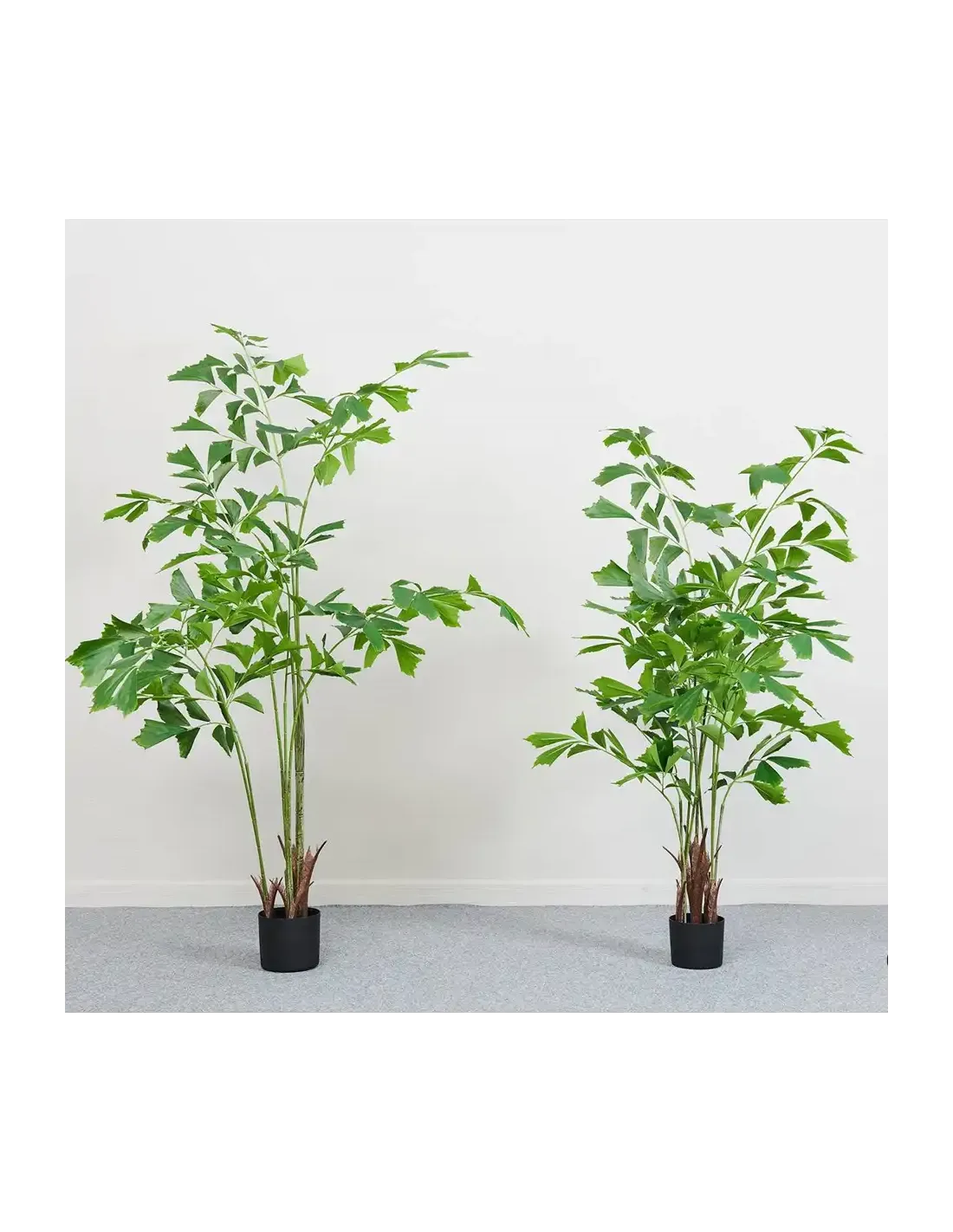 La Caryota és una planta artificial d'aspecte exòtic, amb fulles que imiten les de la palmera cua de peix. Les seves frondes són verdes i detallades, proporcionant un toc tropical i elegant a qualsevol espai interior. Fàcil de mantenir i perfecta per decorar llars i oficines amb un aire natural sense necessitat de cures constants