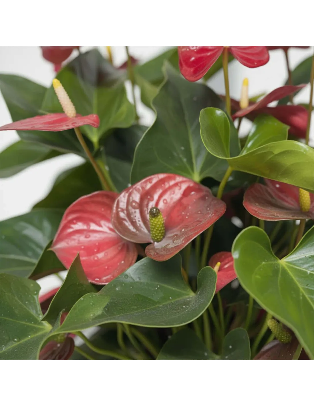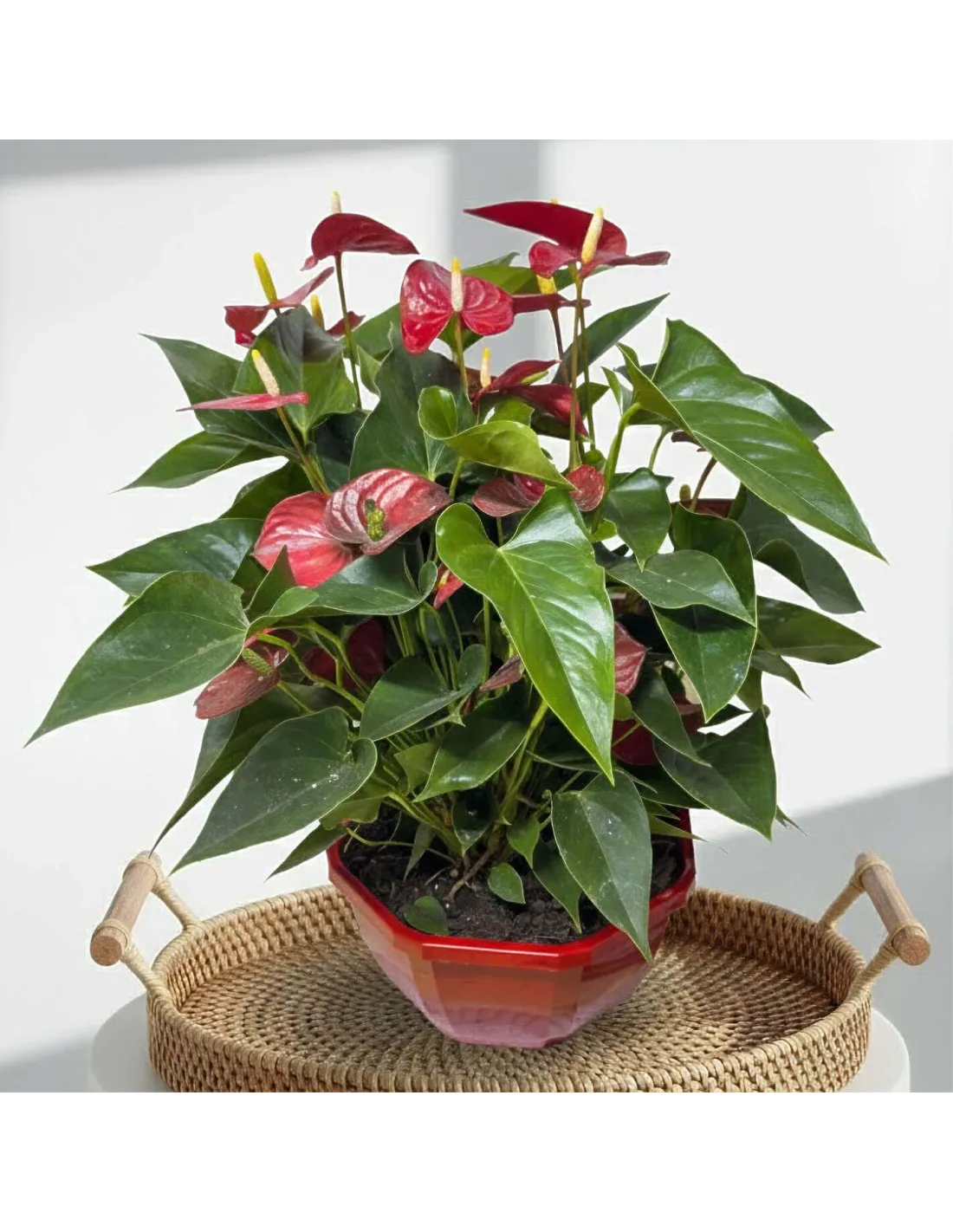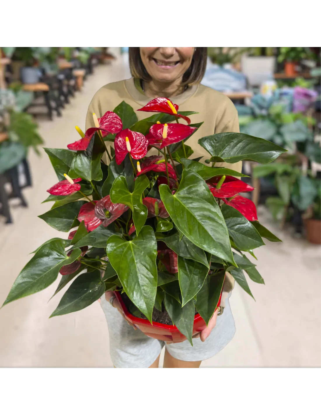 L’anthurium en tarrina és una explosió tropical: fulles lluents i flors d’un vermell intens que es mantenen setmanes. És una planta resistent, decorativa i amb molta personalitat, perfecta per a interiors amb llum natural. Ideal per donar un toc de color i elegància a la teva llar o oficina a Barcelona. Fàcil de cuidar i sempre espectacular.