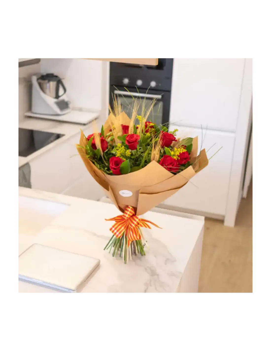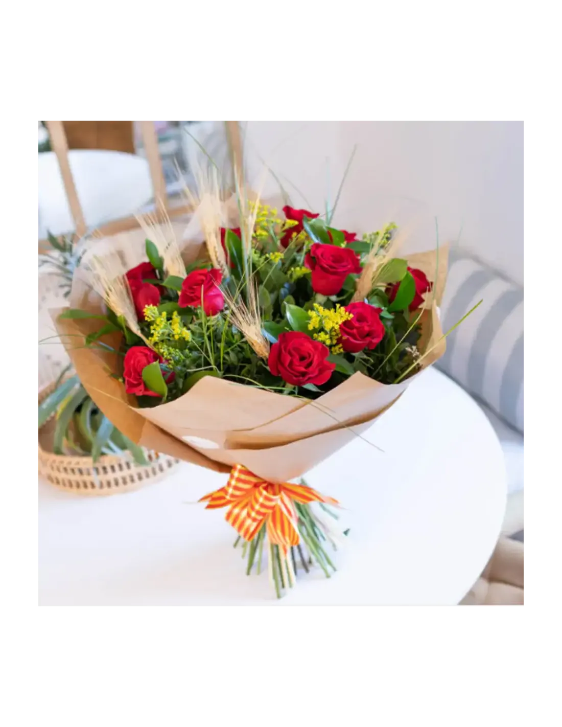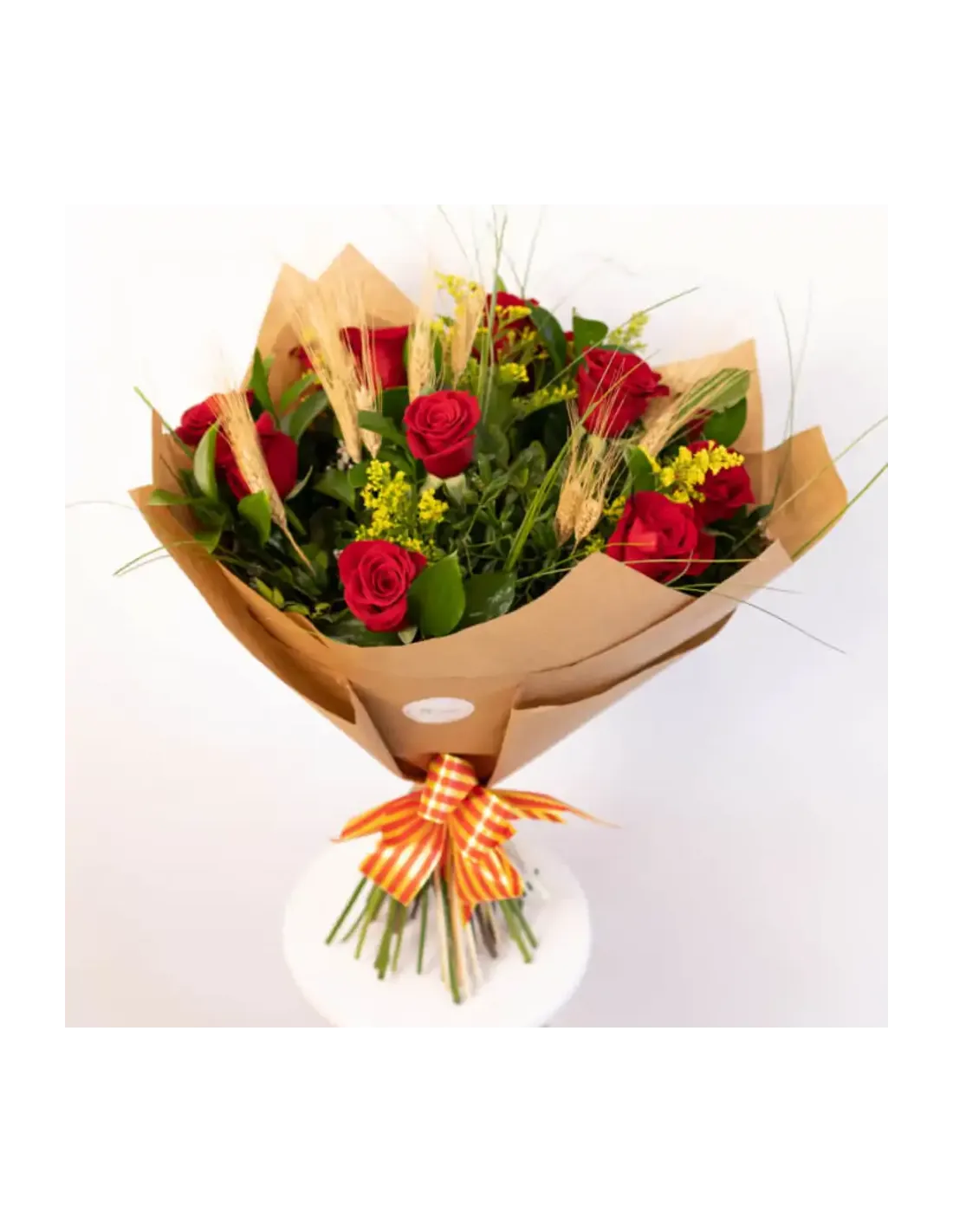 Què millor que celebrar amb un ram distintiu de Sant Jordi? Un ram de 12 roses vermelles amb solidago i espigues que simbolitzen els colors d´aquest gran dia. Regala-li-ho a la teva persona especial demostrant afecte amb aquest gran ram.