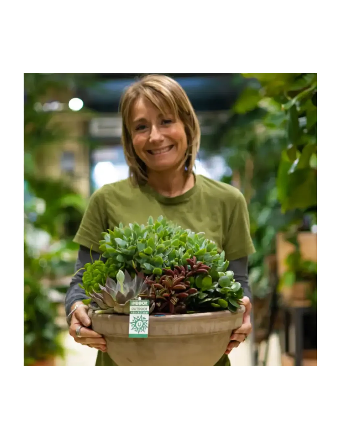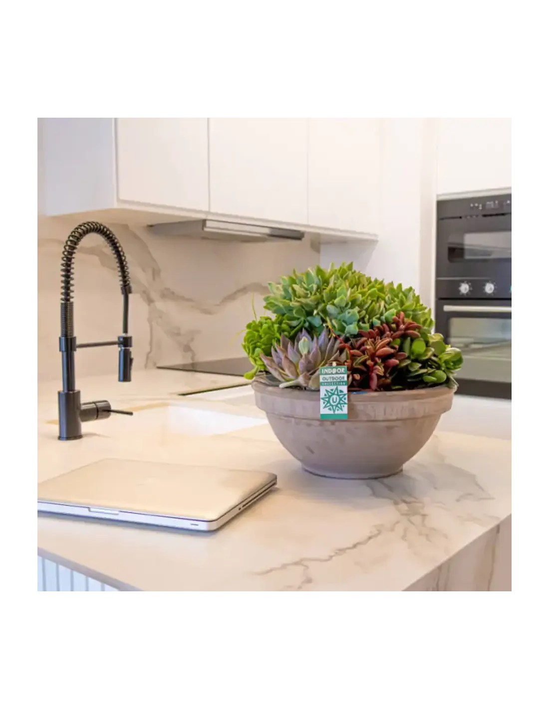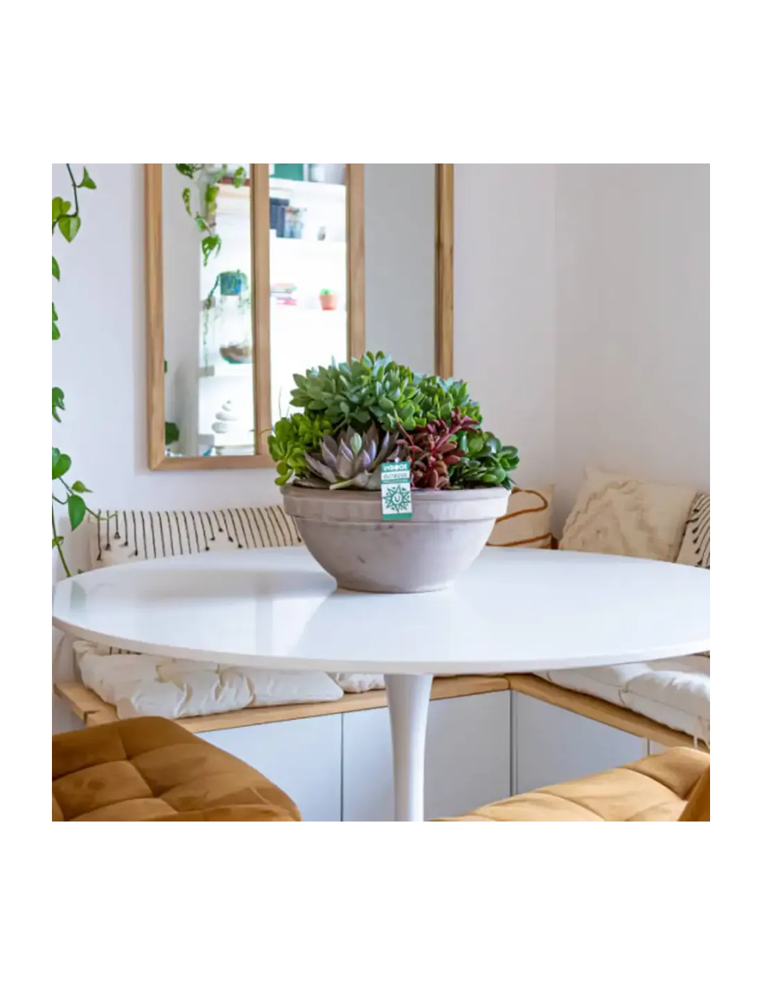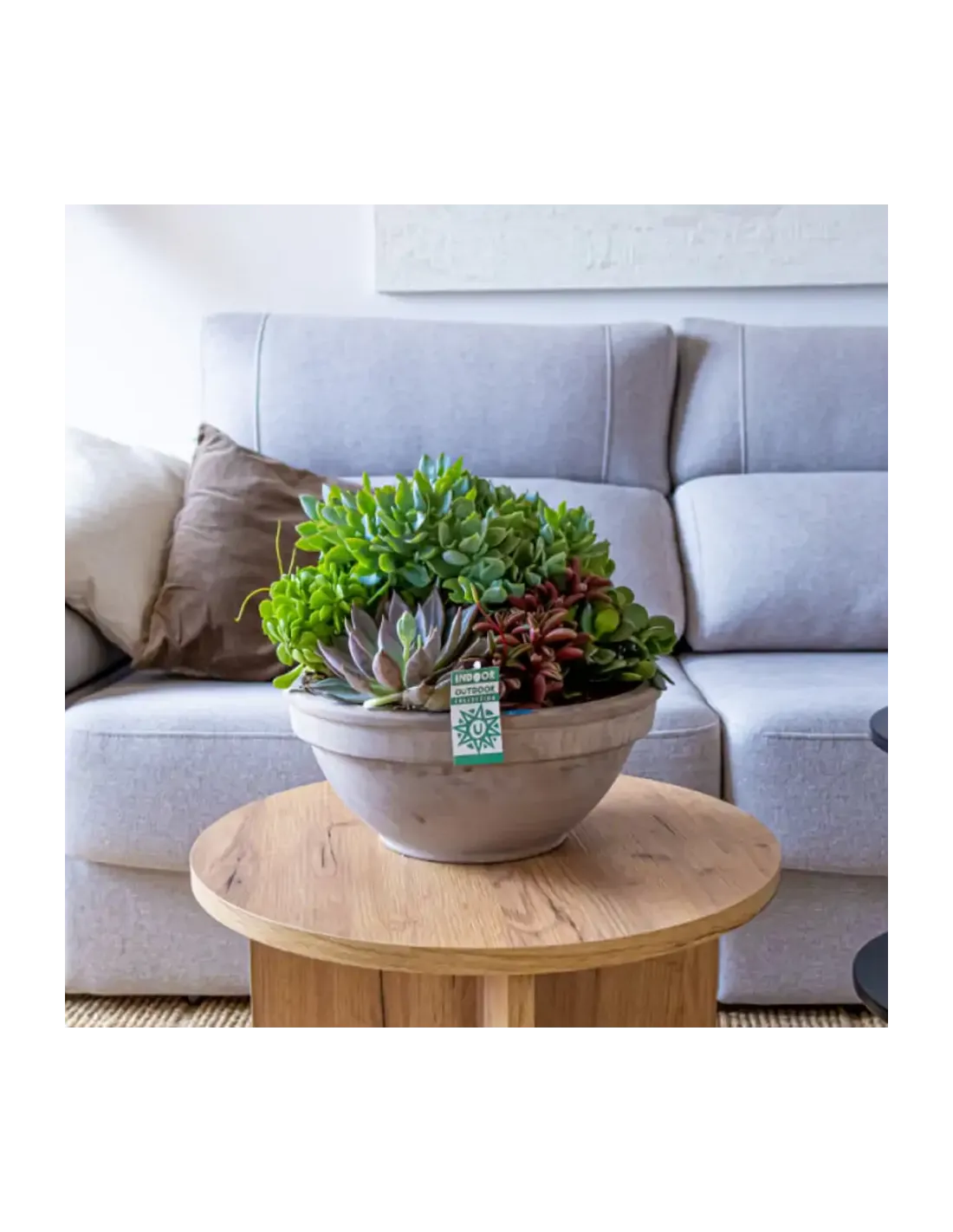 Un racó desèrtic a casa teva o oficina, crea un ambient natural amb Crassbowl. Decora el teu espai amb aquest terrari que ofereix un bell conjunt de plantes crasses, en un test de 35 cm d'amplada i 50 cm d'alçada. Les plantes requereixen poc reg i cura, cosa que les fa perfectes per a aquells que busquen una opció de baix manteniment. Embelleix i gaudeix de la serenitat natural que brinden aquestes meravelloses plantes donant vida a qualsevol espai.