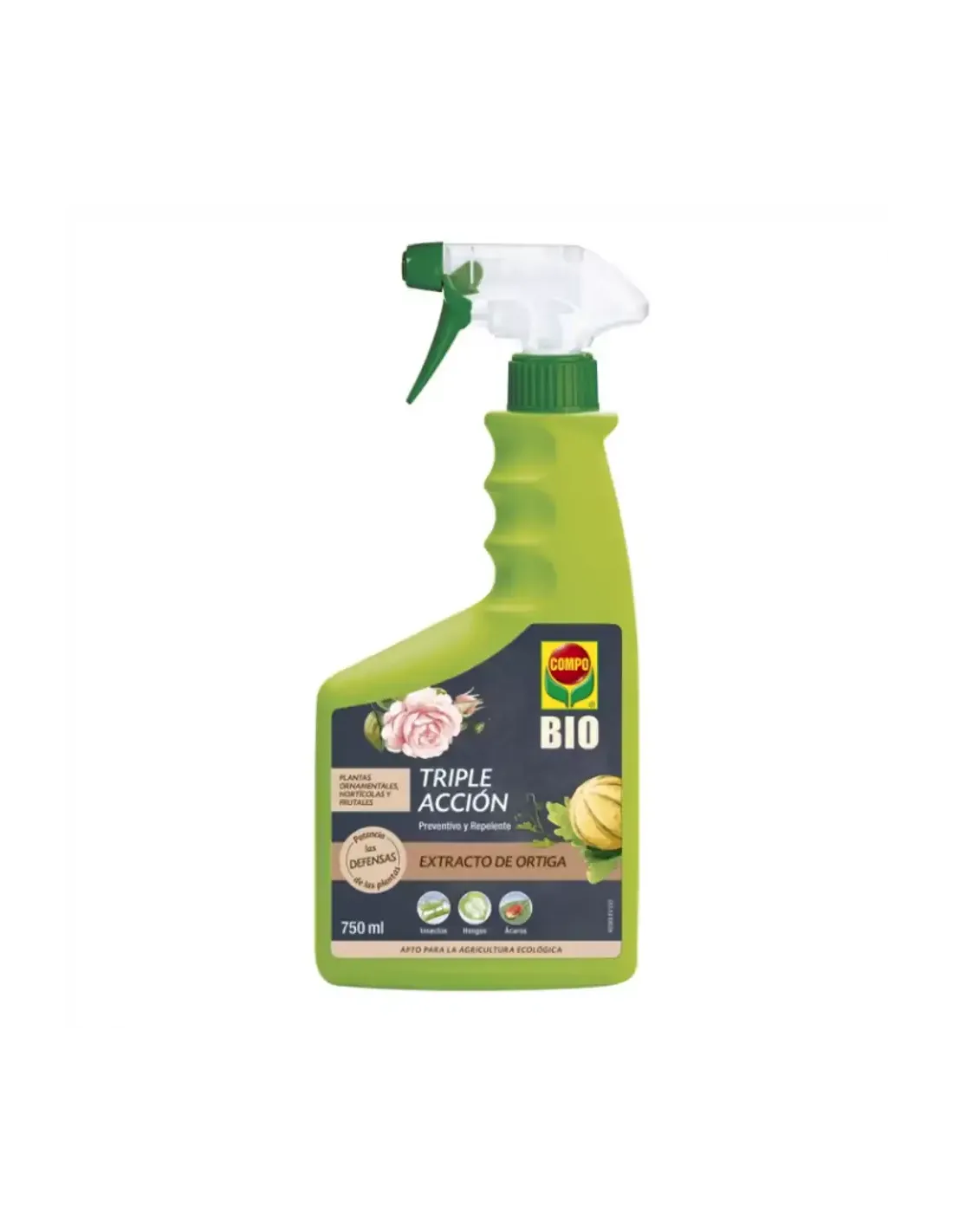 Protección 3 en 1: insecticida, fungicida y acaricida protegiendo a las plantas de insectos, hongos y ácaros.