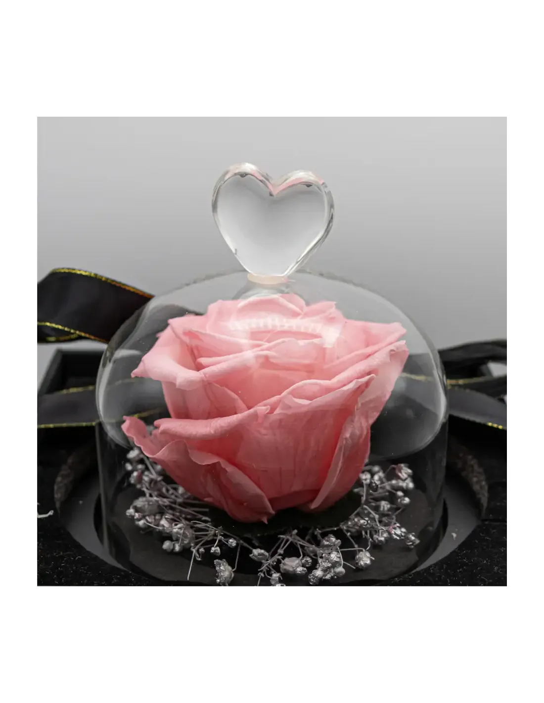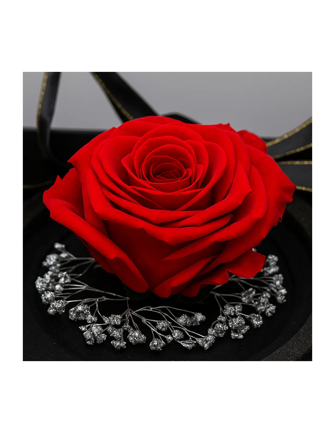 Sorprende con un detalle inolvidable: una rosa preservada en cúpula de cristal, símbolo del amor eterno. Esta rosa liofilizada, cuidadosamente seleccionada y tratada para conservar su belleza intacta, se presenta en una elegante caja de lujo, lista para emocionar a quien la reciba.