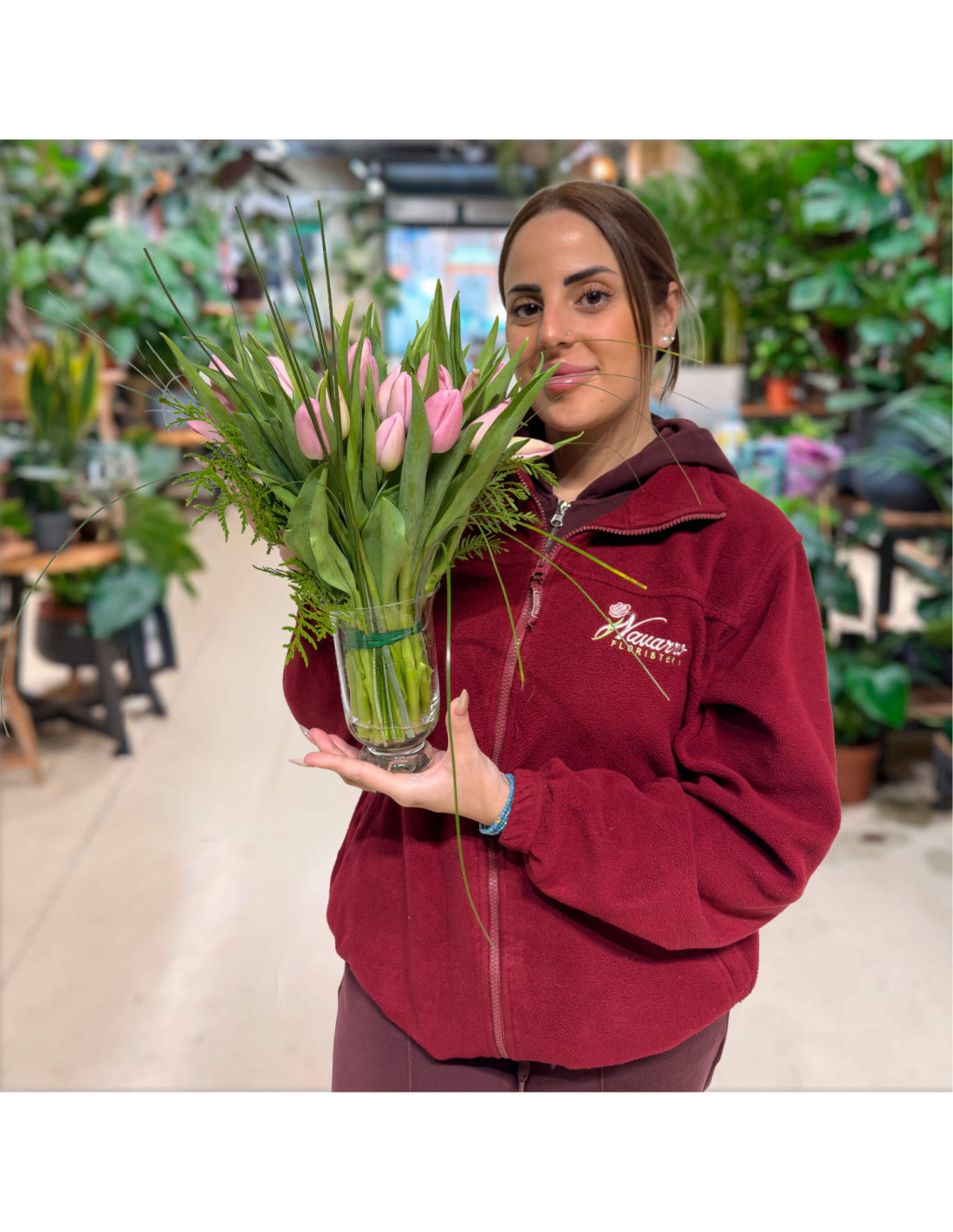 Este minijarrón de tulipanes amarillos es un soplo de alegría y frescura para cualquier rincón de tu hogar. Su tamaño compacto lo convierte en el detalle perfecto para mesas auxiliares, escritorios o estanterías, aportando un toque natural y elegante sin recargar el espacio. Los tulipanes, símbolo de luz y esperanza, están cuidadosamente seleccionados para transmitir calidez y optimismo en cada hoja. Ideal para regalar o para darte un pequeño capricho floral que ilumina el día.