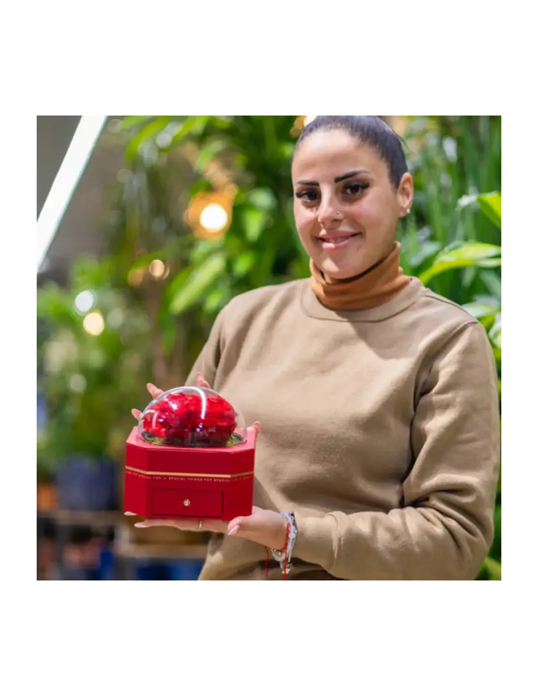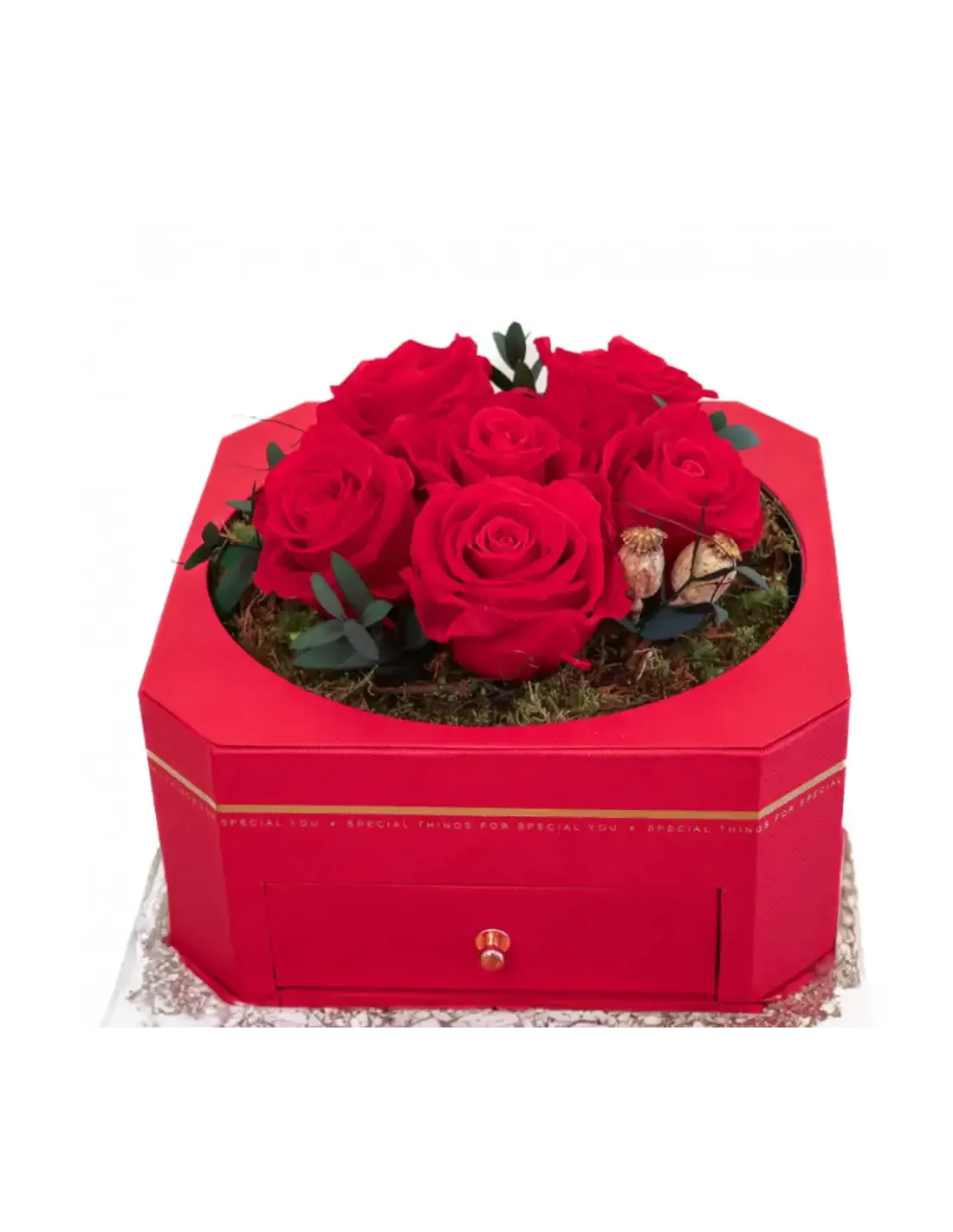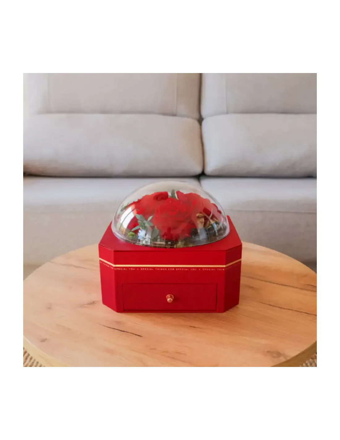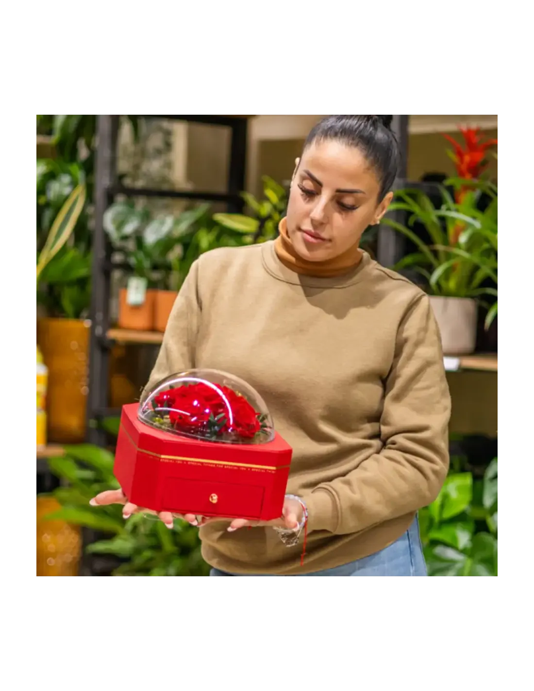 Caja de Amor Eterno con Dulce Sorpresa Déjate enamorar por nuestra cautivadora caja que fusiona la belleza eterna de las rosas preservadas con la delicia instantánea de exquisitas chocolatinas. Rosas Preservadas que cuentan la historia eterna de tu amor y un Cajoncito de Chocolatinas como sorpresa dulce para endulzar cada momento.¿Por qué solo regalar flores cuando puedes regalar toda una experiencia? Unidades limitadas .Haz tu pedido hoy y lleva el romance a un nivel más dulce.