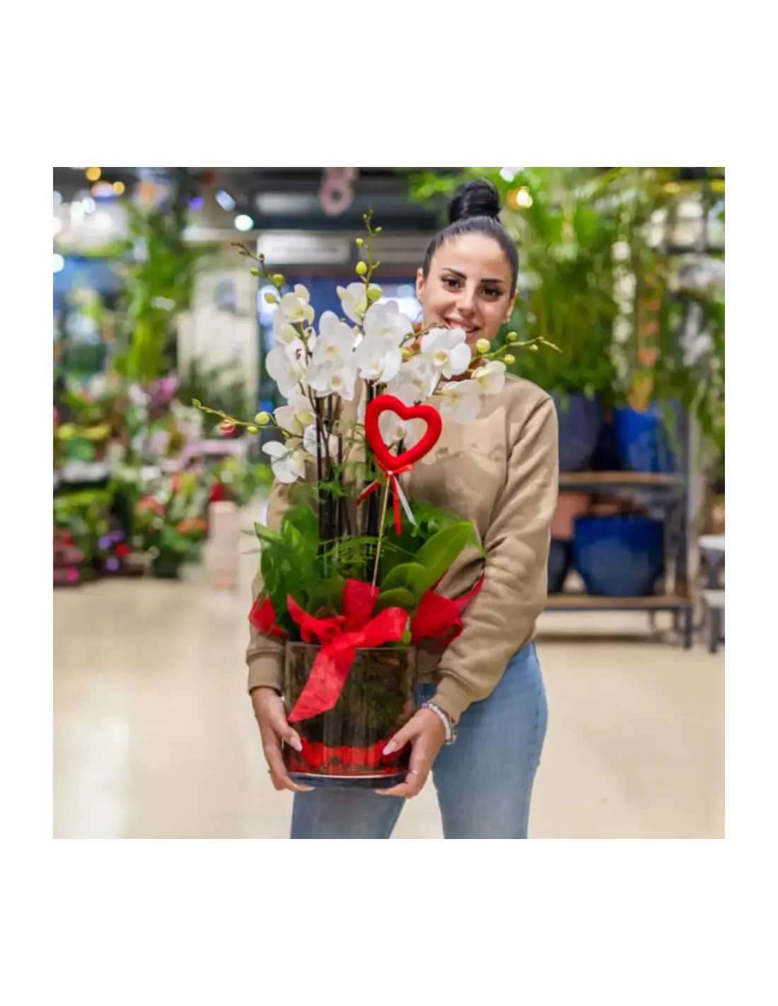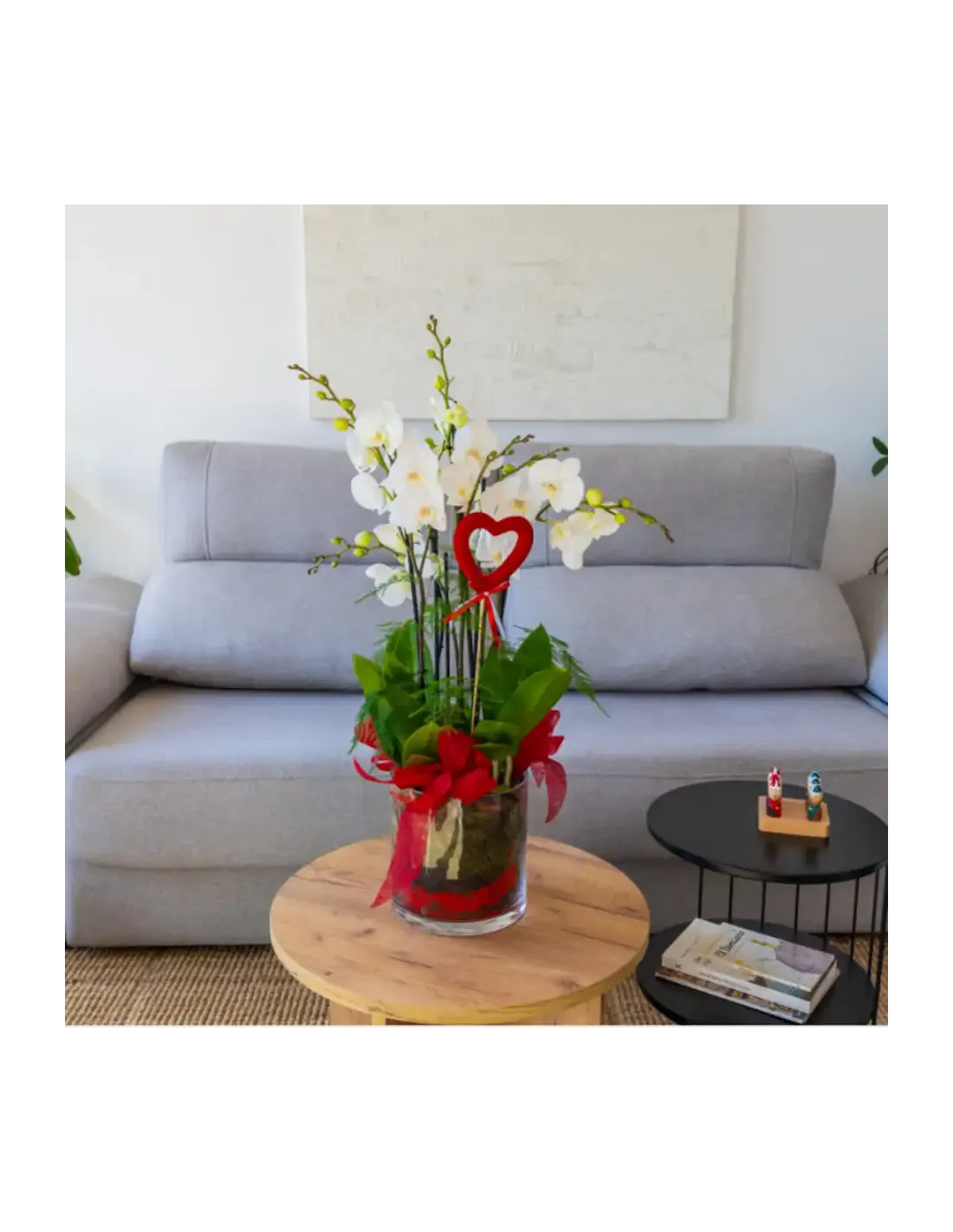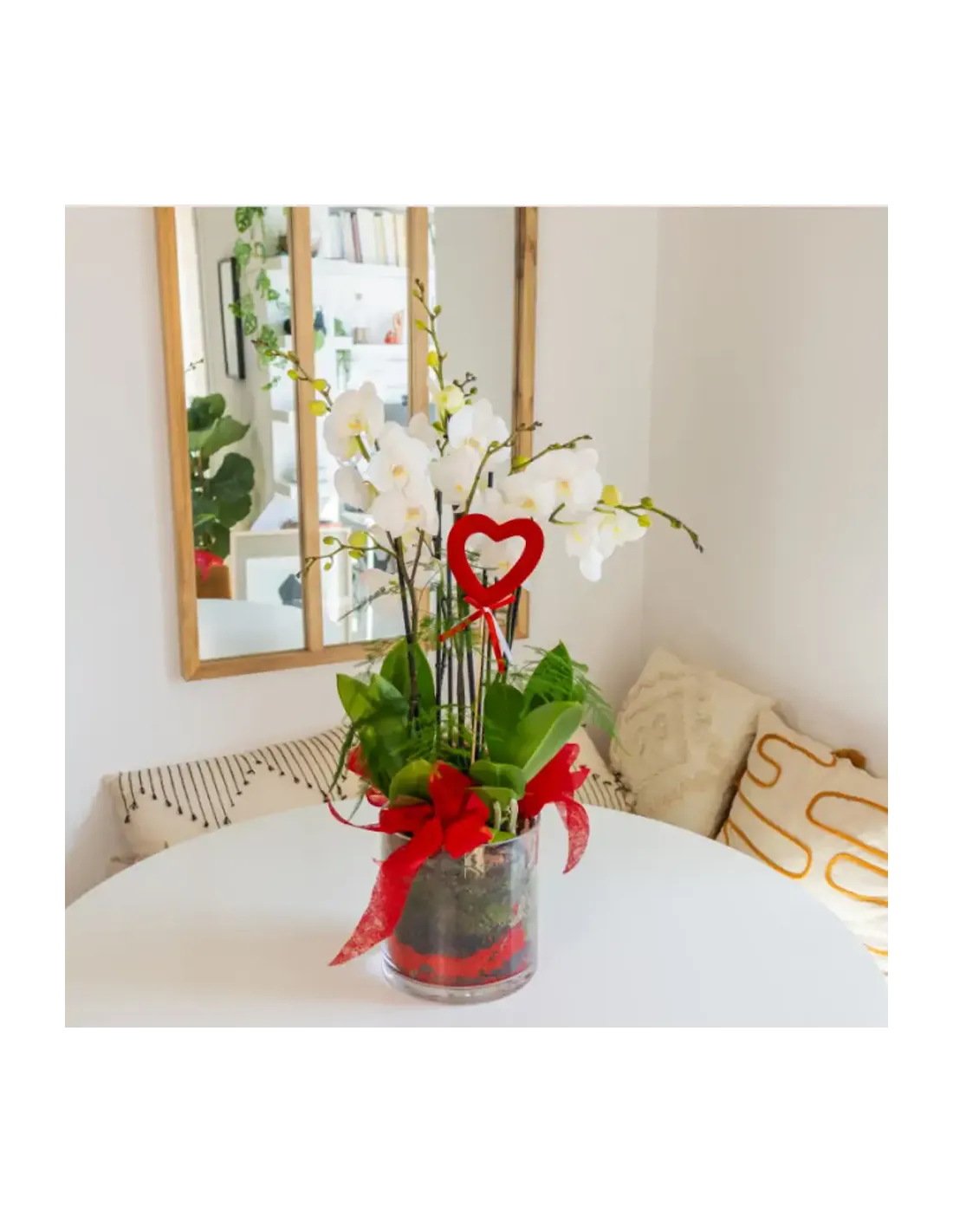 Cilindro de Orquideas Phalaenopsis Blanca: Elegancia Natural para San Valentín.SV4