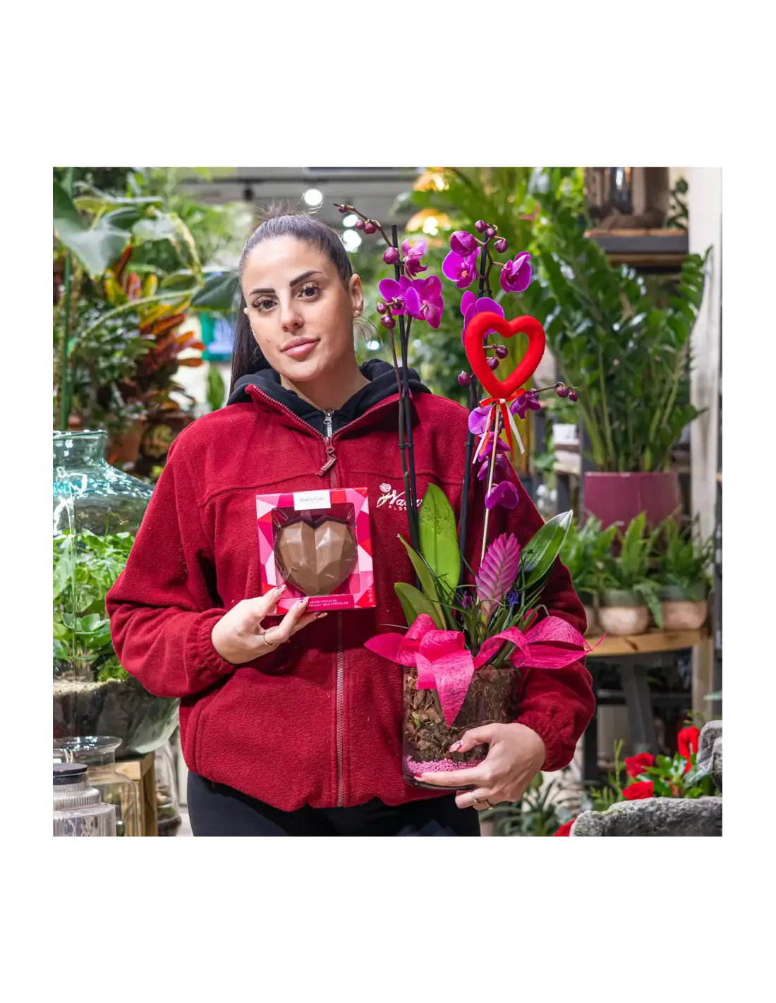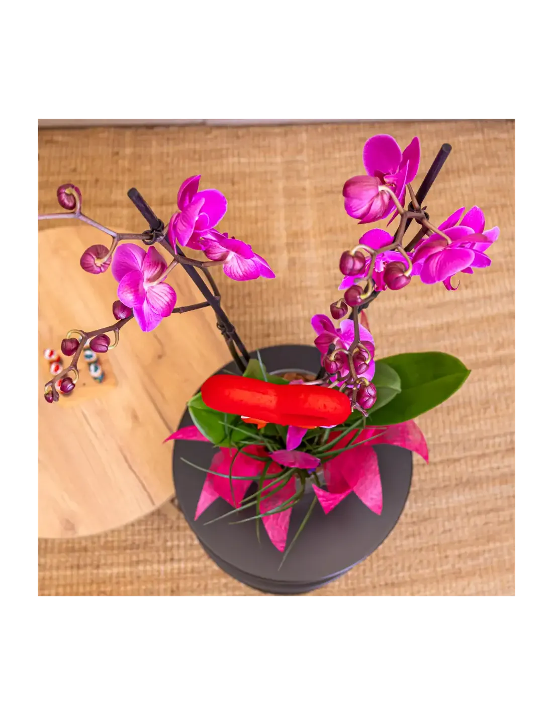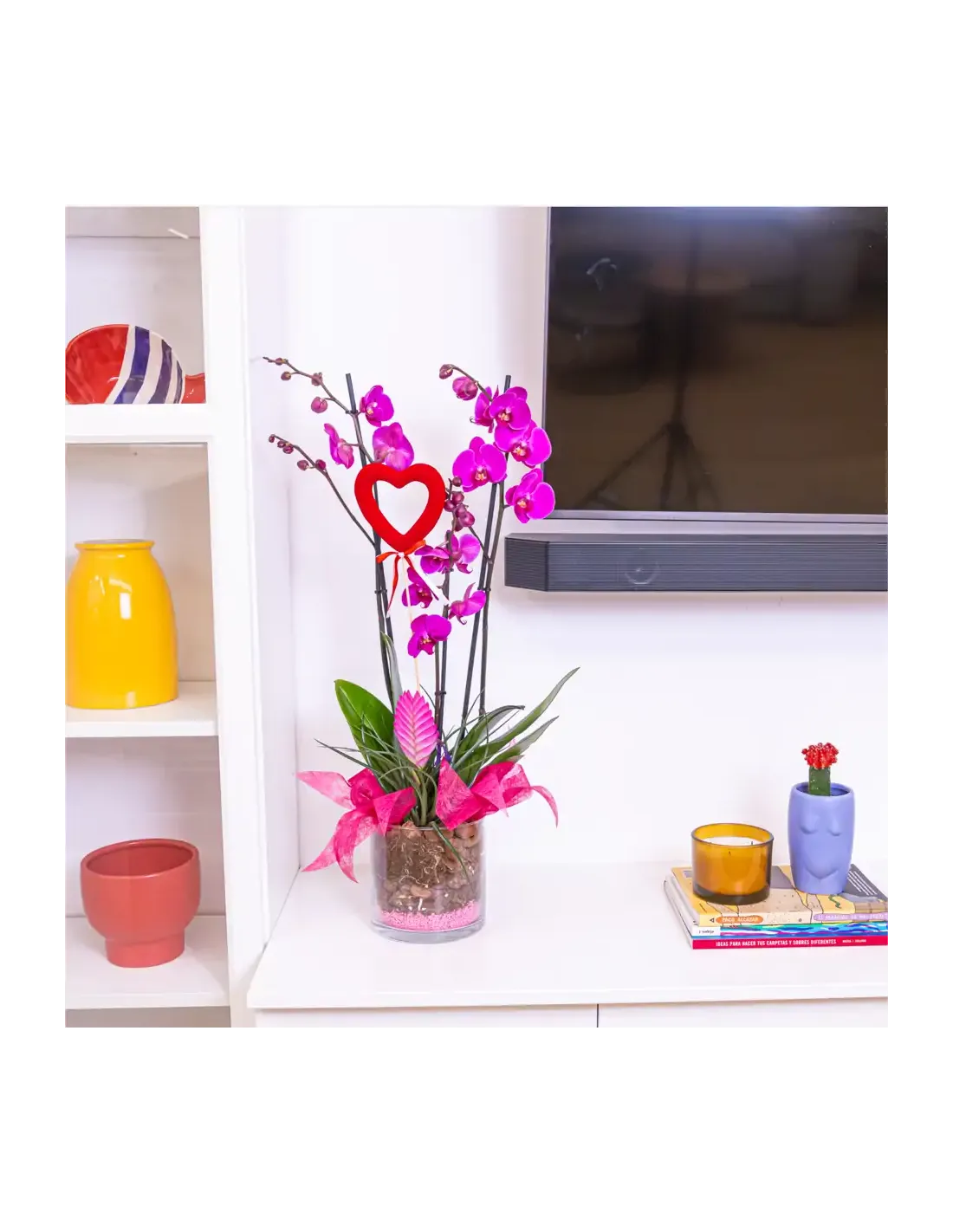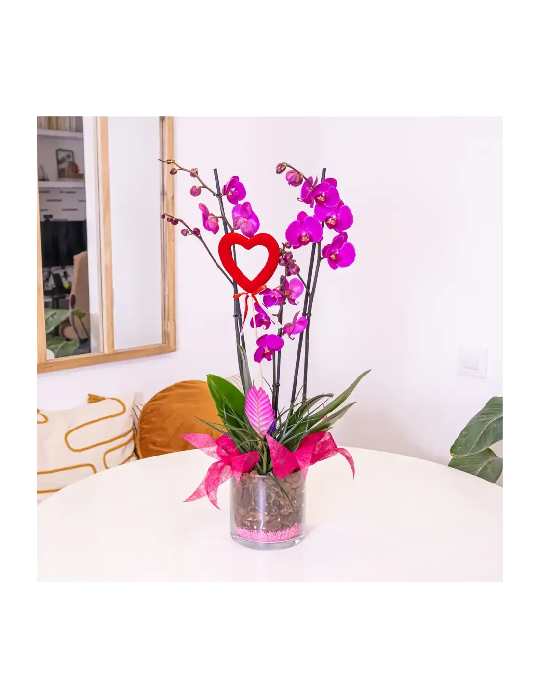 Cilindro de Orquideas Phalaenopsis Lila: Elegancia Floral para San Valentín.SV8