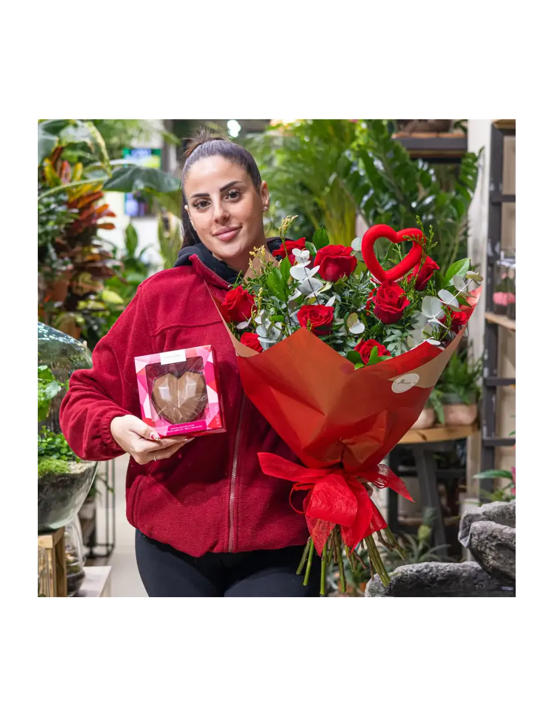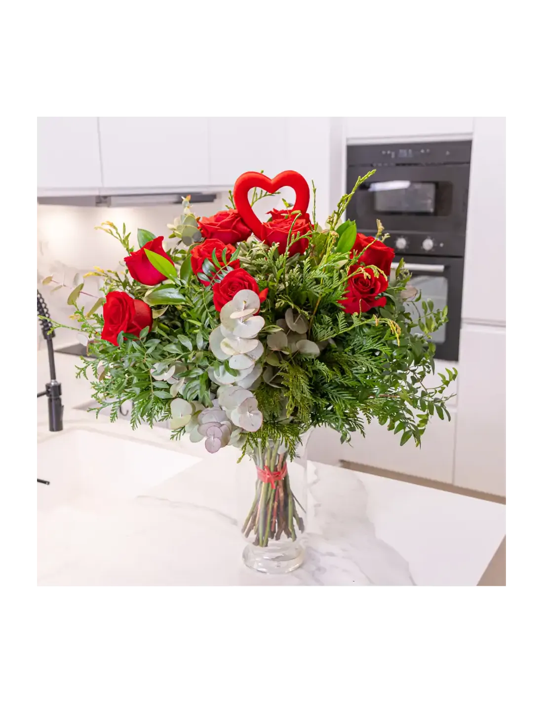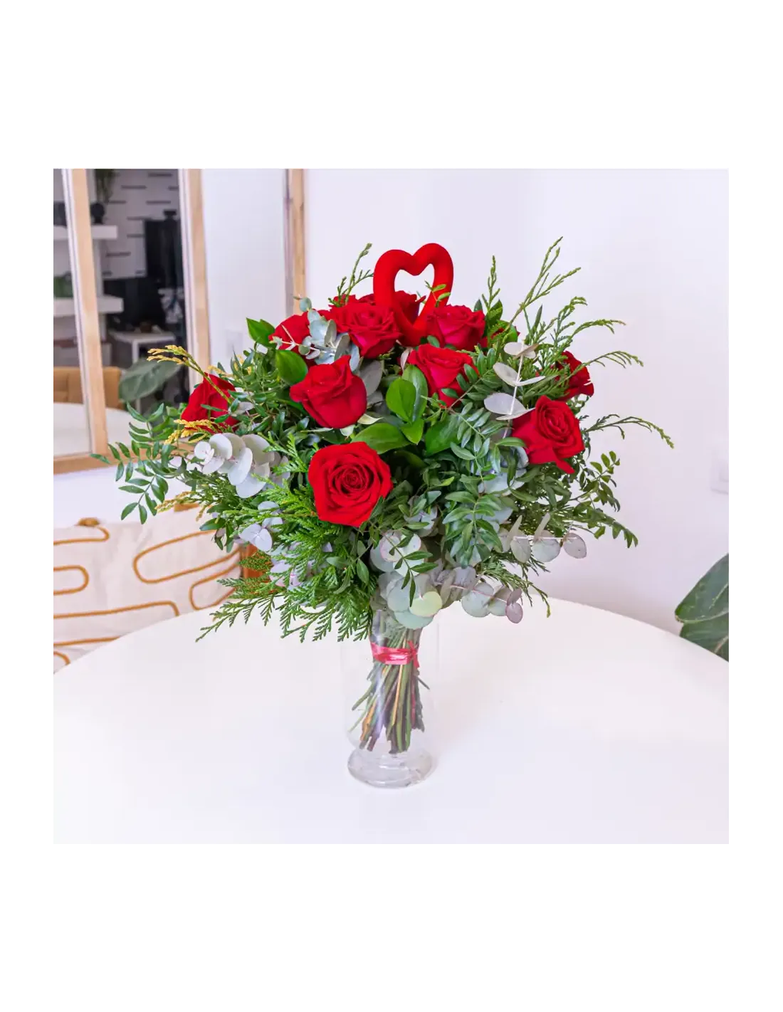 ¡Dale un toque de diversión y emoción a tu San Valentín con nuestro Ramo de 12 Rosas Rojas al que puedes añadirle unos chocolates, un vino....! Este no es tu ramo de rosas común y corriente; es un estallido de alegría en forma floral. Con 12 radiantes rosas rojas y verdes decorativos, cada pétalo es una invitación a la diversión.Pero espera, ¡la fiesta no termina ahí! Nuestro pick especial es como el confeti de amor que completa esta celebración floral. Imagina la sonrisa en su rostro cuando descubra este regalo lleno de amor y felicidad.