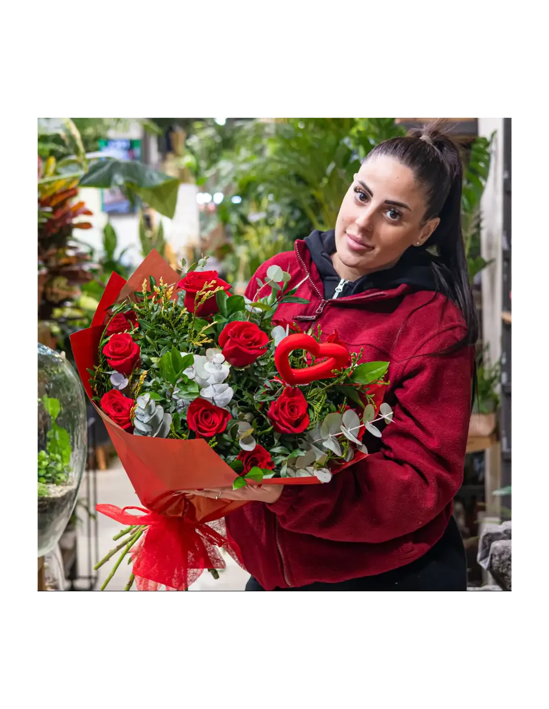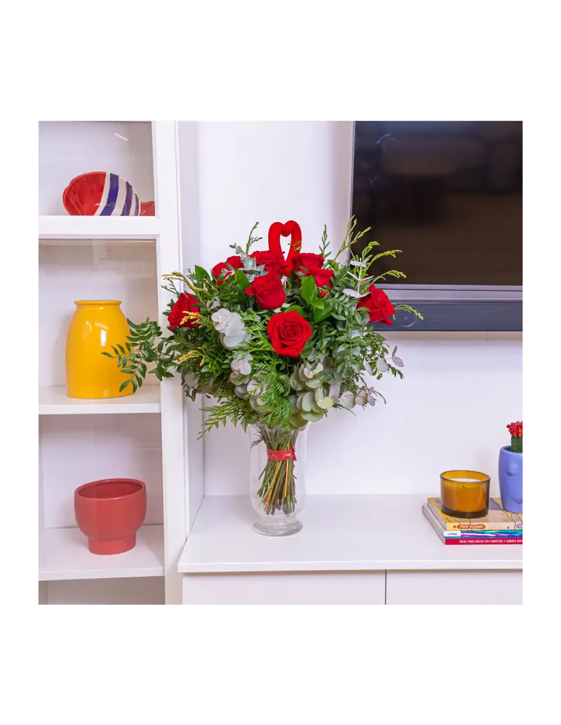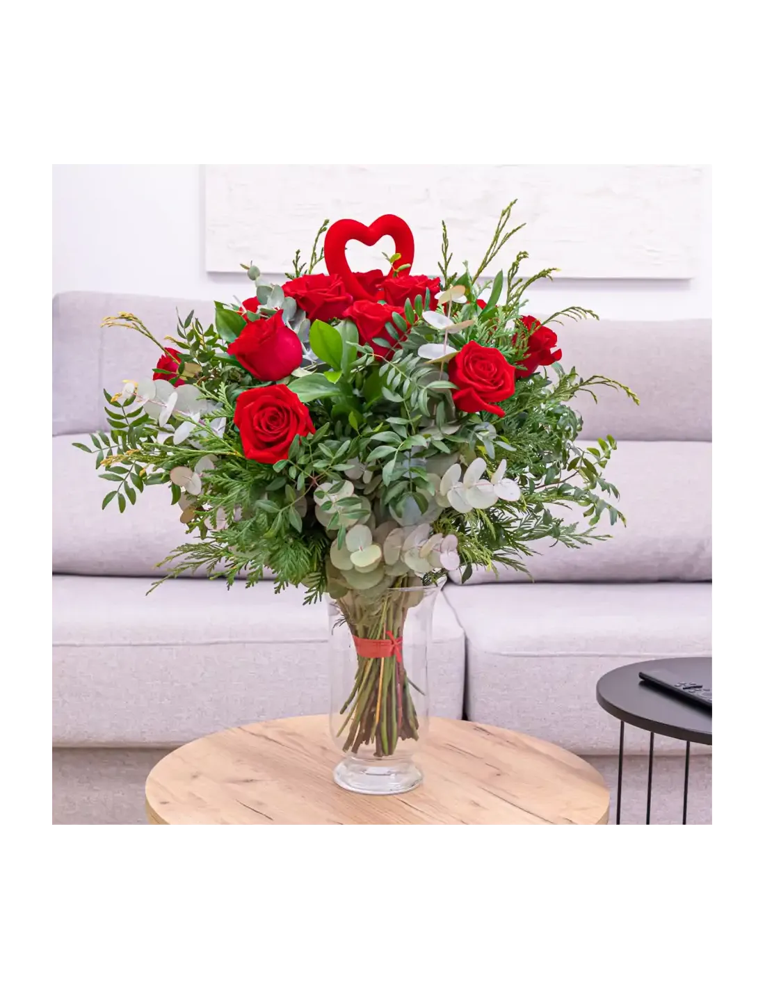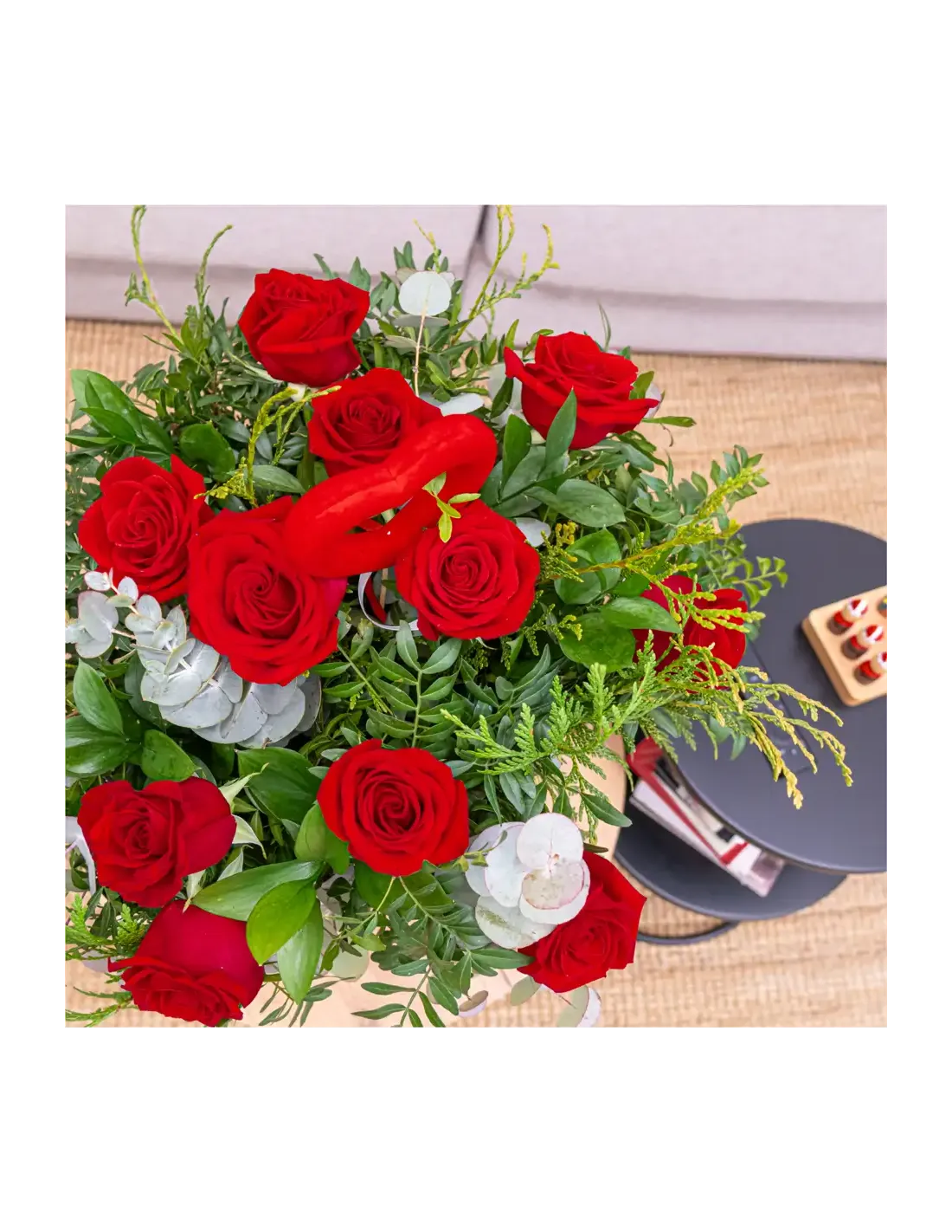¡Dale un toque de diversión y emoción a tu San Valentín con nuestro Ramo de 12 Rosas Rojas al que puedes añadirle unos chocolates, un vino....! Este no es tu ramo de rosas común y corriente; es un estallido de alegría en forma floral. Con 12 radiantes rosas rojas y verdes decorativos, cada pétalo es una invitación a la diversión.Pero espera, ¡la fiesta no termina ahí! Nuestro pick especial es como el confeti de amor que completa esta celebración floral. Imagina la sonrisa en su rostro cuando descubra este regalo lleno de amor y felicidad.