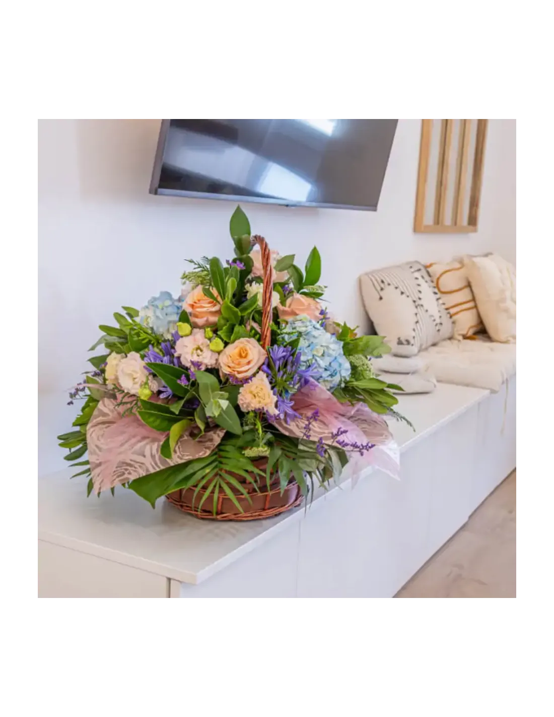 Sorprende a tus seres queridos con la delicada y encantadora Cesta variada con hortensias. Este hermoso arreglo floral, presentado en una elegante cesta, combina una selección de flores en suaves tonos pastel, creando una atmósfera de ternura y sofisticación. Perfecto para cualquier ocasión especial, esta cesta es un regalo que dejará una impresión duradera.Esta Cesta de Flores fe verano con hortensias es ideal para ocasiones como cumpleaños, aniversarios, nacimientos o simplemente para alegrar el día a alguien especial. Su mezcla de colores y texturas transmite sentimientos de amor, aprecio y delicadeza.