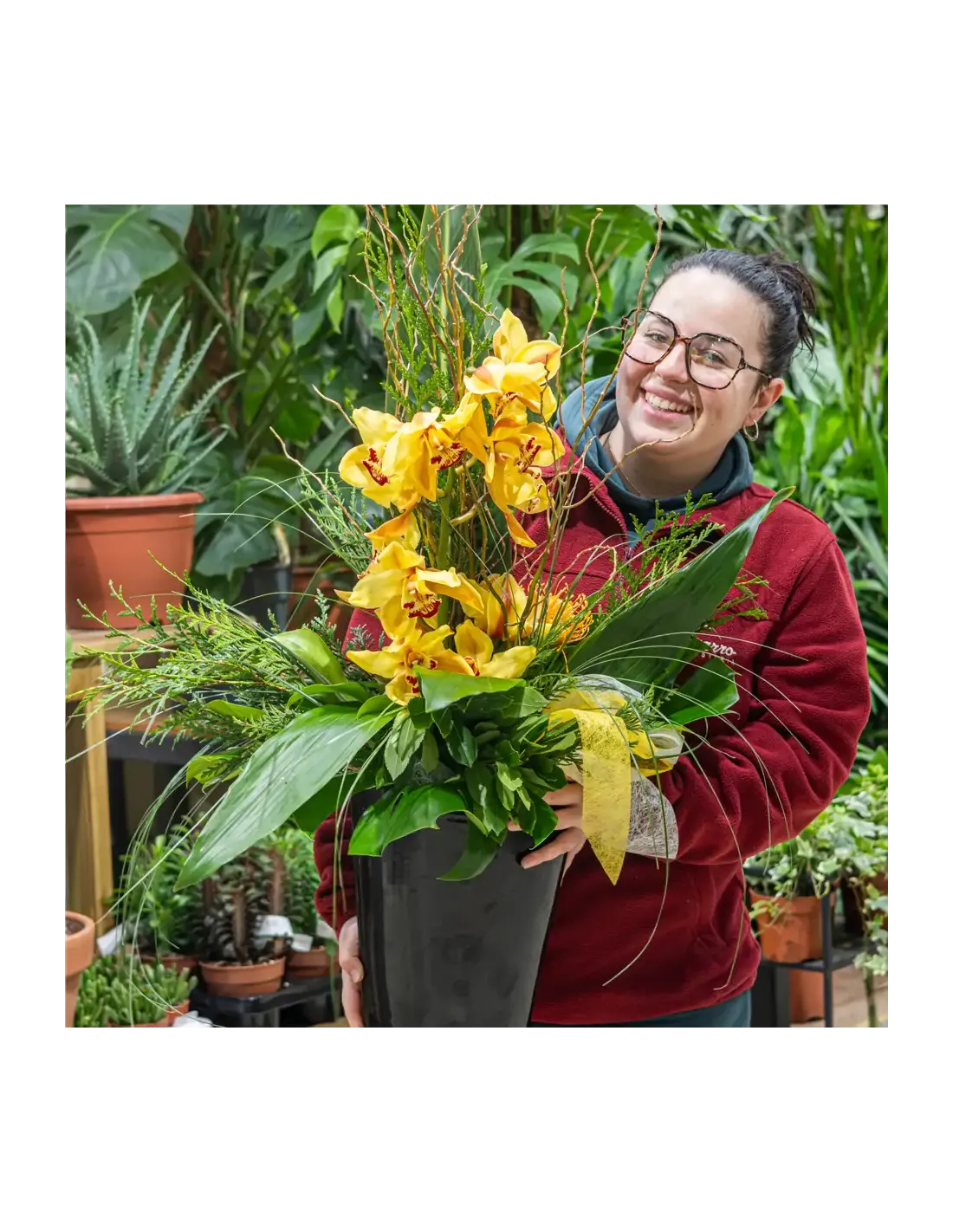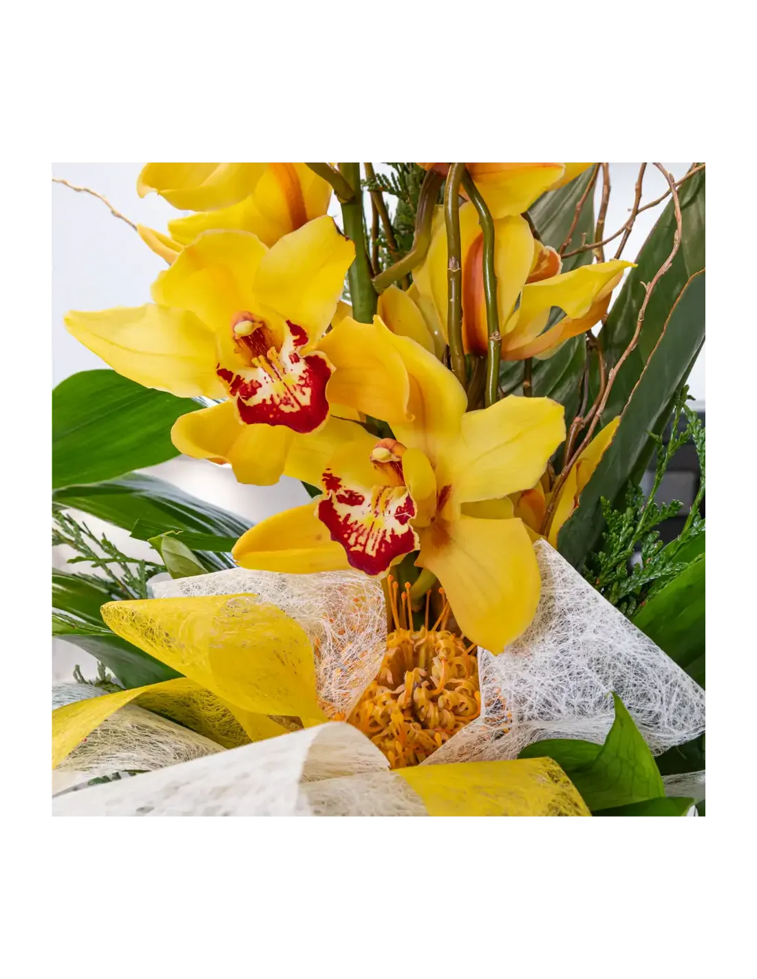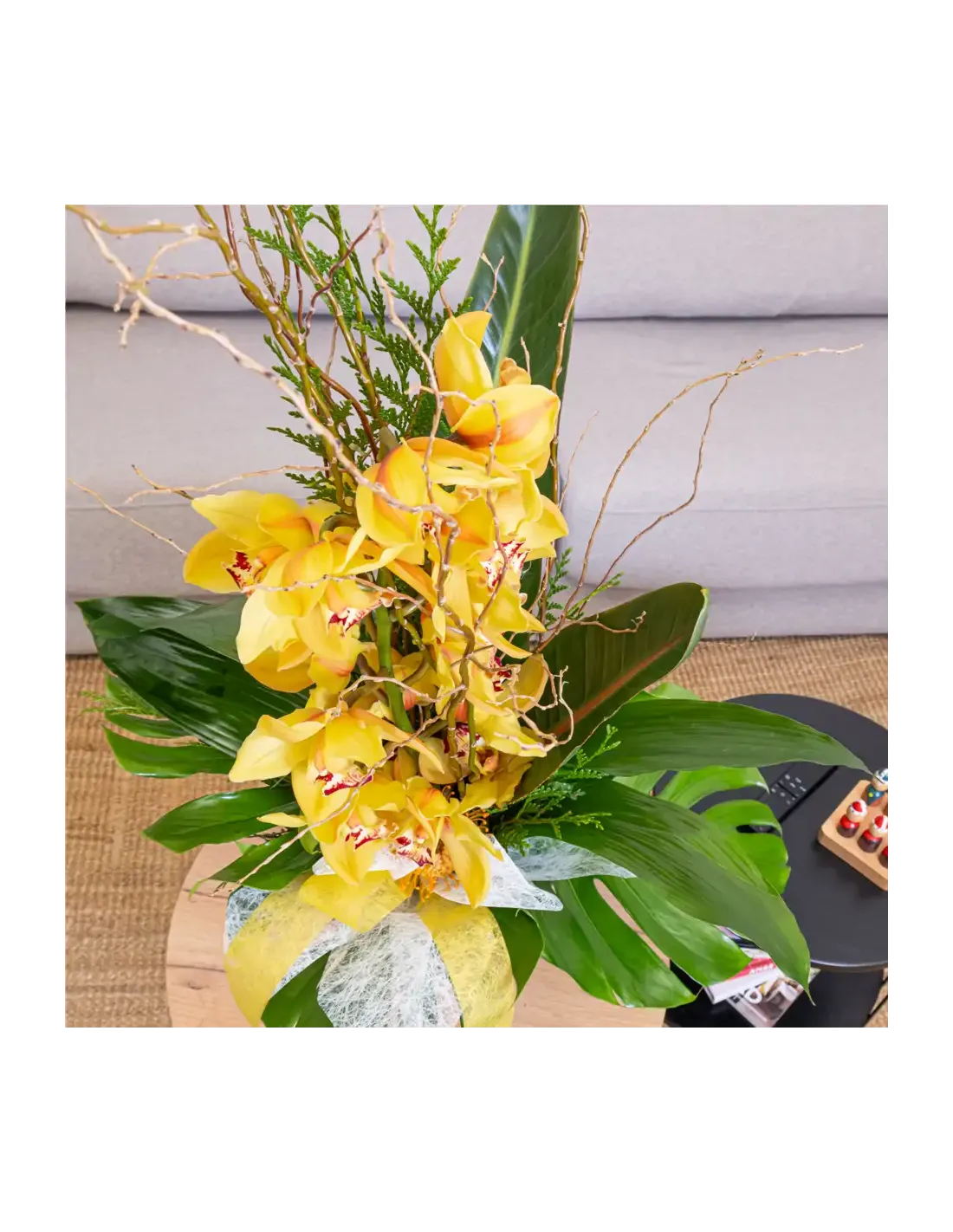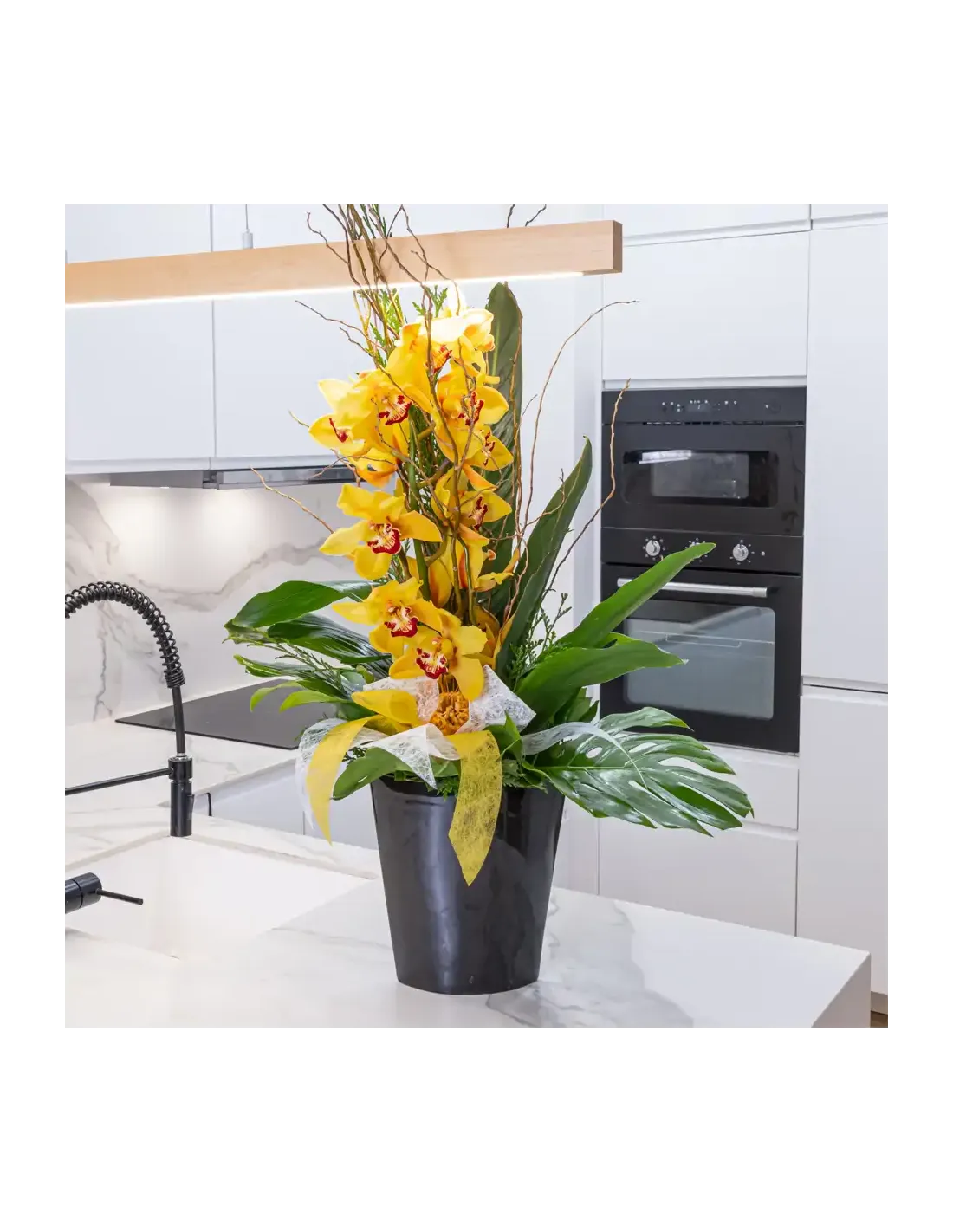 Déjate cautivar por la elegancia de la orquídea cymbidium en este diseño vertical que destaca por su sencillez y sofisticación. Disponible en varios colores para adaptarse a cualquier ambiente, este arreglo es perfecto para dar un aire moderno y refinado a hogares y oficinas