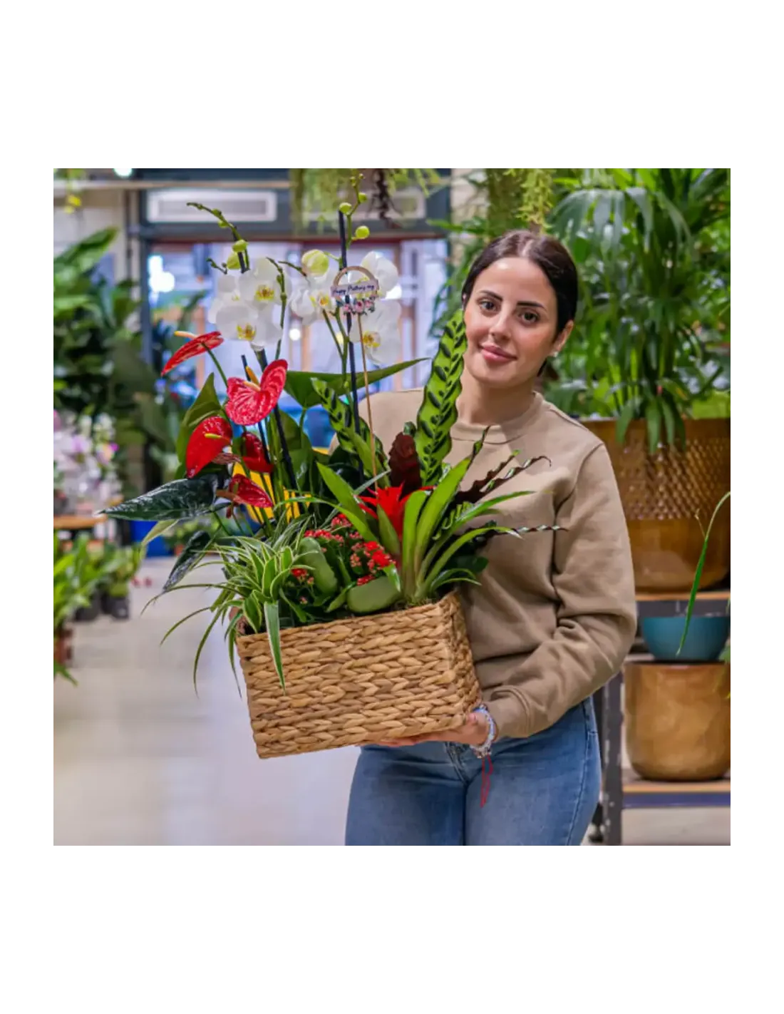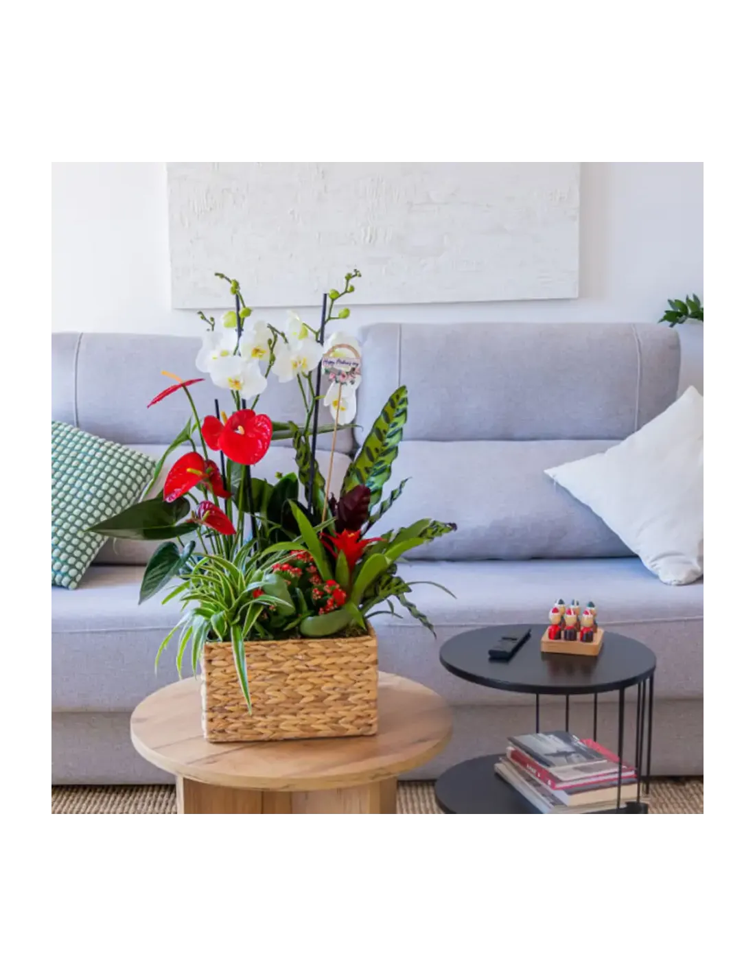 Celebra la belleza exótica con nuestro encantador grupo de plantas. Desde la elegancia de la orquídea hasta la vivacidad del anthurium rojo y la bromelia roja, cada planta es una obra de arte natural. Este regalo es una expresión perfecta de amor y gratitud hacia mamá en su día especial. Un toque de frescura y exotismo que iluminará su hogar y su corazón.