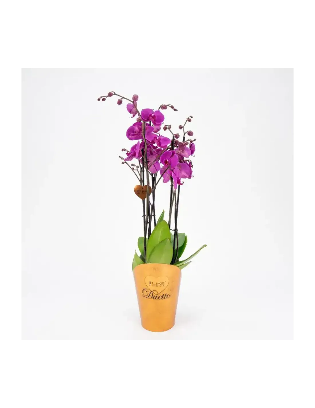 Orquídea Phaleanopsis Deluxe. Altura: 85?cm. 3 Colores a elegir: Fucsia, rosa y blanca. Unas orquídeas que te deja sin habla. Elegantes y hermosas, con ellas aciertas seguro. Para cuidar a estas maravillosas flores, ponlas cerca de la luz del sol, pero que no les dé de forma directa, mantenlas en lugar templado y mantén su sustrato húmedo.
