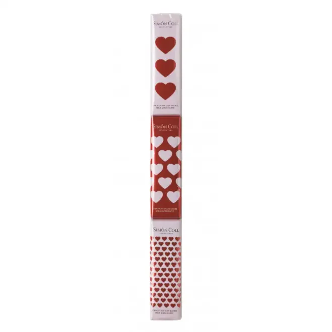 Receta de chocolate extrafino con leche. Elaborado según el sistema tradicional de tostado del grano de cacao. Perfecto para los amantes del tradicional chocolate con leche Simon Coll ya que mantenemos la misma receta con toda la cremosidad y suavidad. Se presenta en un set de 3 barras de chocolate de 18g cada una .Son ideales para regalar a alguien que quiere expresar su amor en cualquier época del año o para ocasiones especiales como Sant Jordi