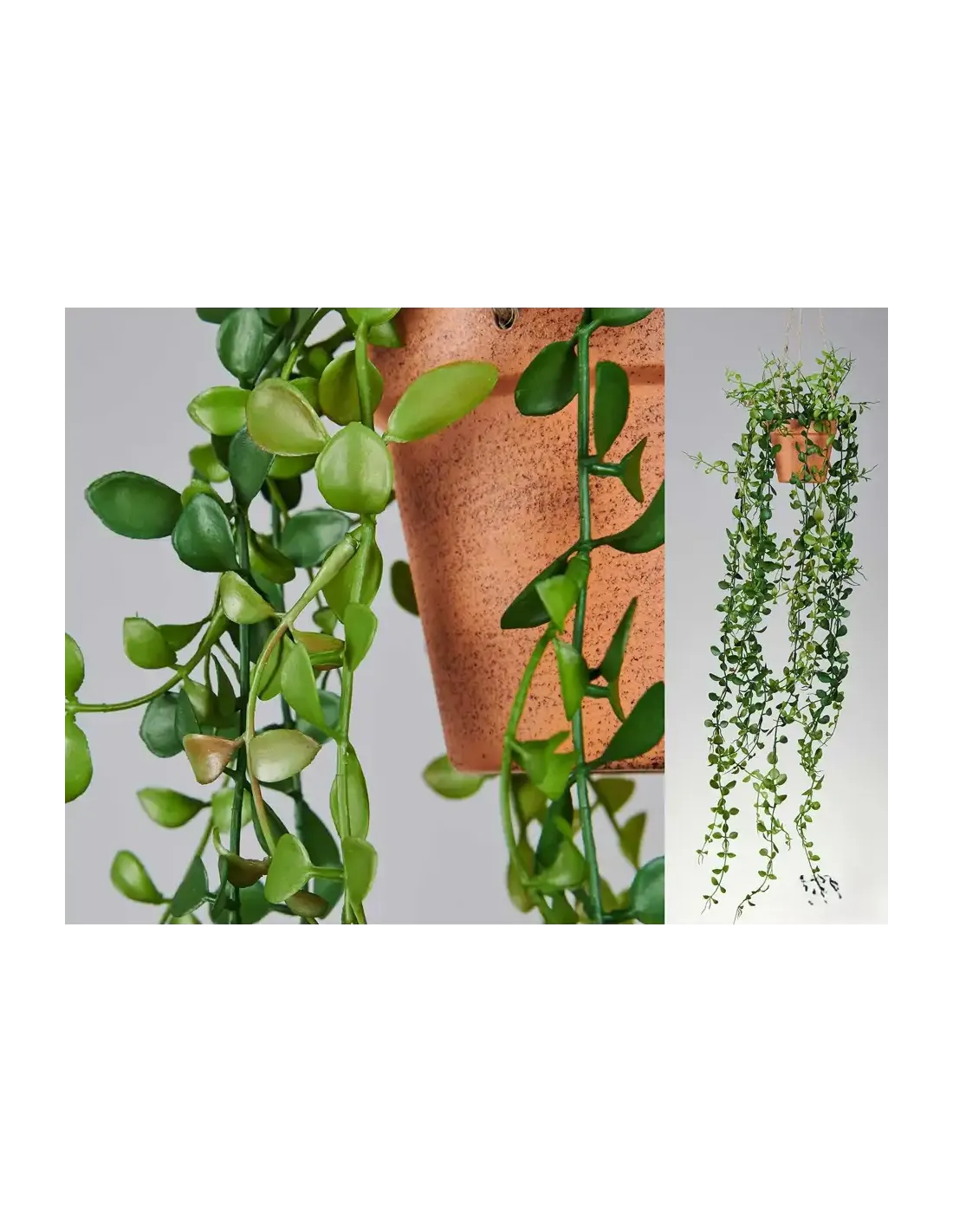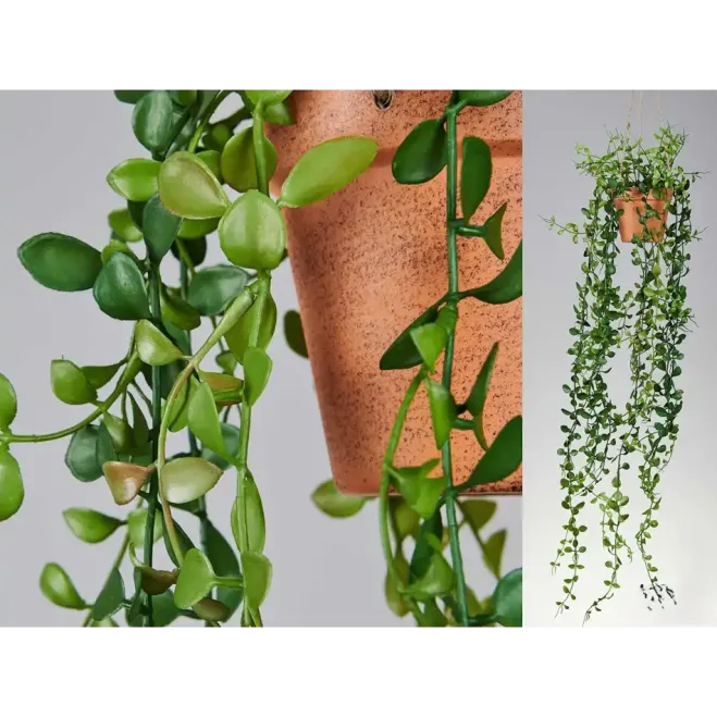La Dischidia artificial es una planta decorativa que imita las delicadas hojas redondeadas y verdes de la planta natural. Perfecta para colgar o colocar en repisas, aporta un toque fresco y elegante a cualquier interior sin necesidad de cuidados. Ideal para embellecer hogares, oficinas y cualquier espacio que necesite un toque natural y estilizado.