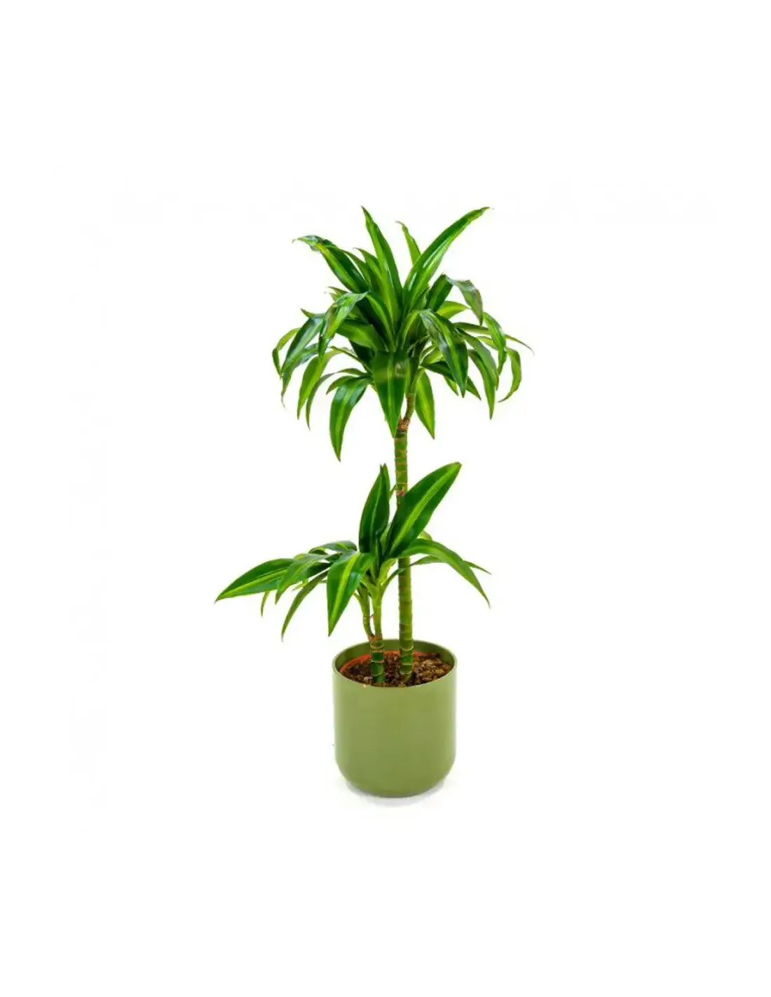 Esta variedad de dracaena es muy parecida a la dracaena messengeana pero su tallo y hojas son más pequeños (Tiesto no incluido) Planta voluminosa que se desarrolló en Hawai a 1000 metros de altura. Esta variedad de Dracaena no es tan sensible al frío como el tronco del Brasil.