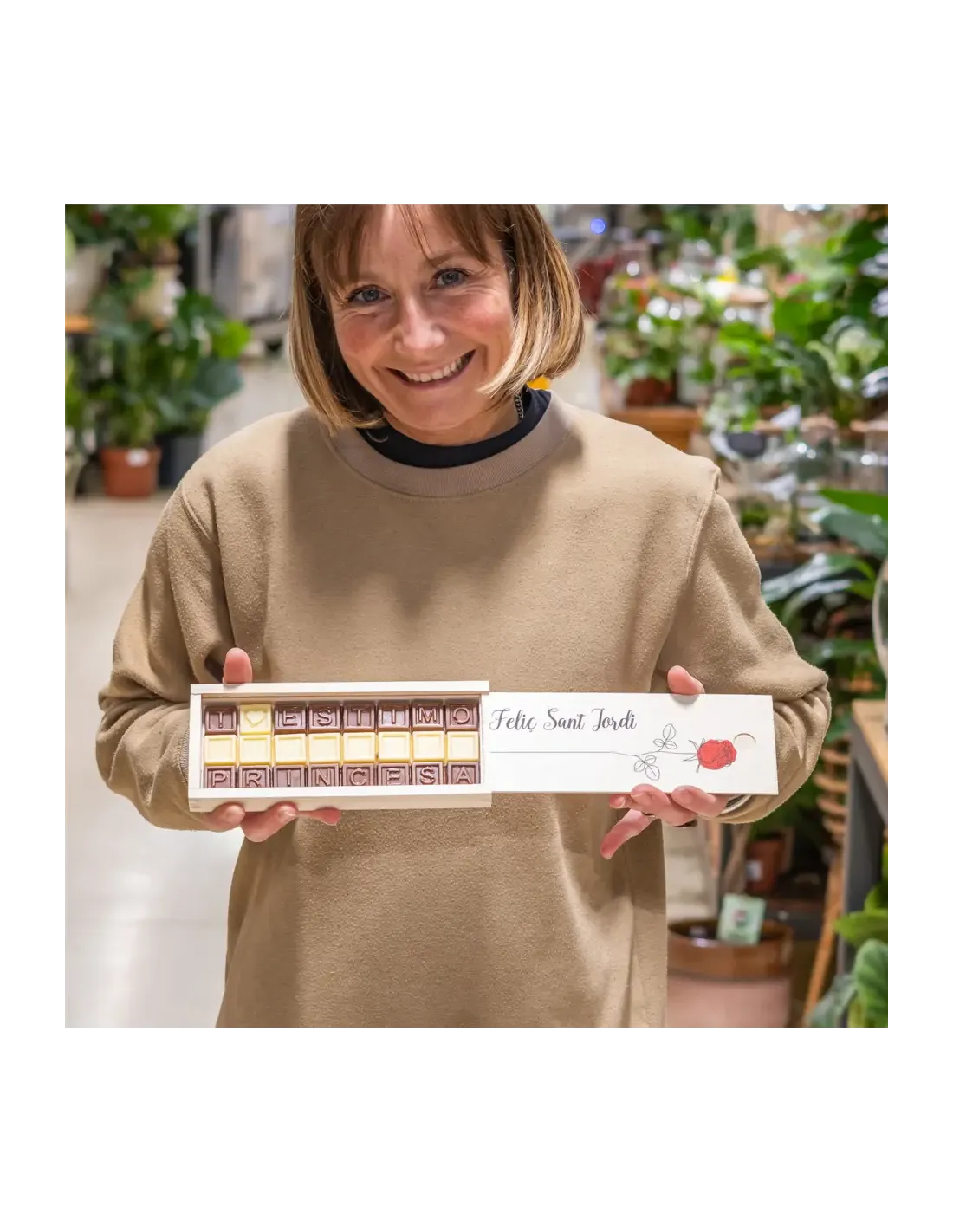 Un detalle dulce y único: caja exclusiva de chocolatinas con el mensaje más bonito de Sant Jordi.