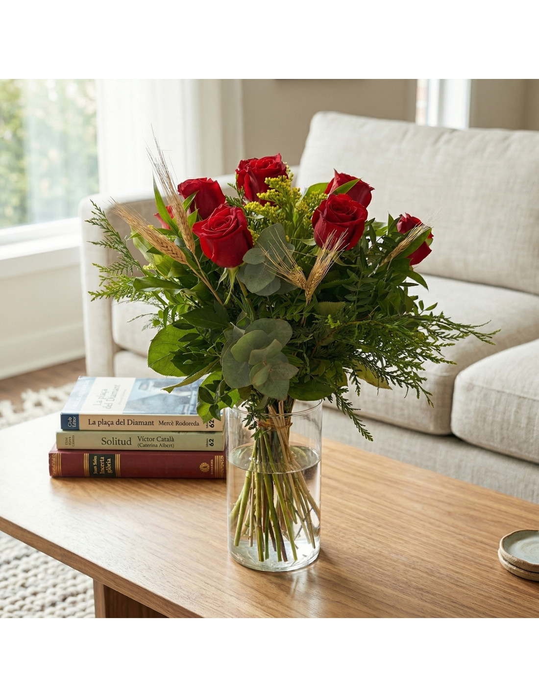 Este ramo de 10 rosas rojas es la expresión más pura y directa del espíritu de Sant Jordi: un gesto clásico que nunca falla y que sigue emocionando generación tras generación. Cada rosa representa amor, admiración y deseo, creando un conjunto armonioso que transmite sentimiento desde el primer instante.