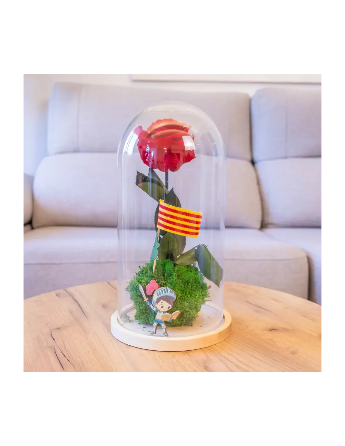 Una obra de arte que simboliza el amor incondicional. Esta rosa eterna, protegida por una cúpula de cristal, es el regalo perfecto para Sant Jordi. Su vibrante color rojo y su impecable belleza evocan la pasión y la devoción,. Este detalle, elegante y atemporal, se convierte en un recuerdo imborrable de un amor que nunca se desvanece.